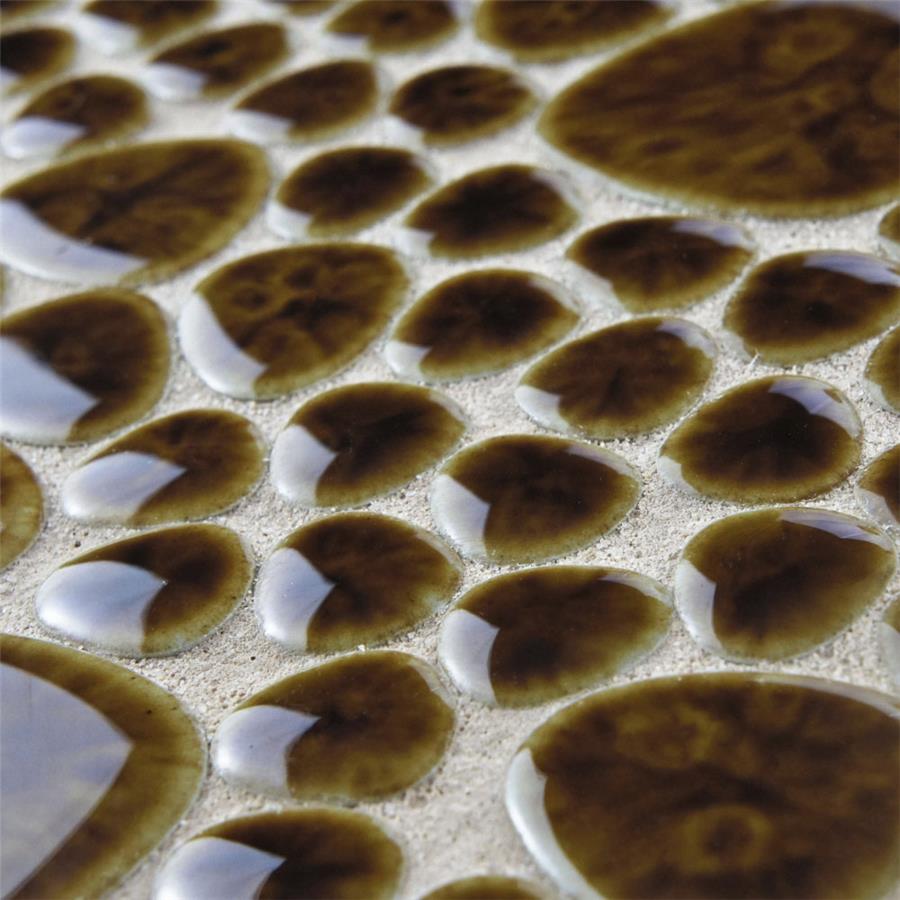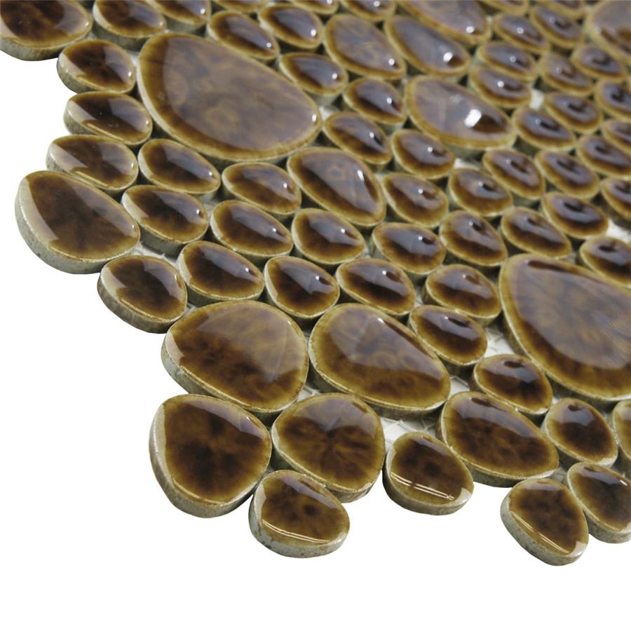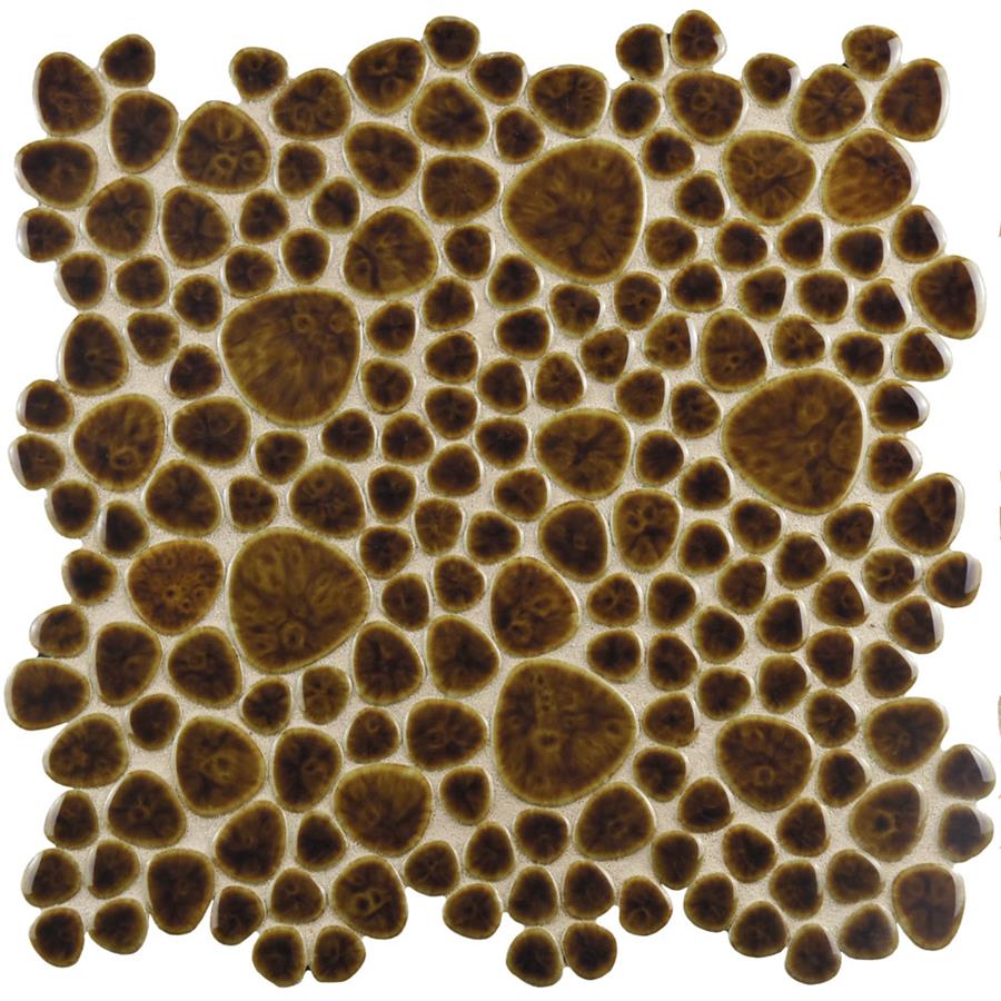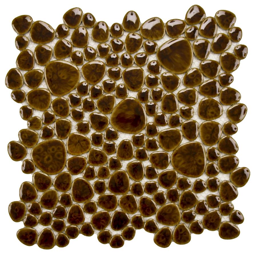 The SomerTile Pebble Mahogany 11 in. x 11 in. x 6 mm Porcelain Mosaic Tile incorporates organic shapes and randomly sized pebble-shaped tiles to add an exciting aesthetic touch to your bathroom, spa, kitchen or pool trim. This nature-inspired mosaic features strong mesh backing material for easy installation, is constructed with durable porcelain material and has an impervious water absorption rating, a glazed, smooth finish and a uniform appearance in tone.Tile is the better choice for your space. This tile is made from natural ingredients, making it a healthy choice as it is free from allergens, VOCs, formaldehyde and PVC.