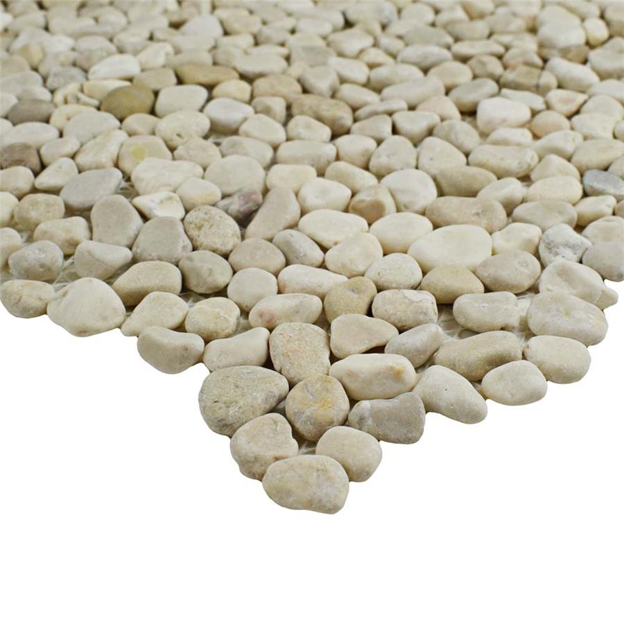 Constructed of natural pebble stones, our Pebblini Sandstone 12-1/4 in. x 12-1/4 in. Pebble Stone Mosaic Tile brings the irreplaceable beauty of nature into any living space. As an innovative twist on a classic mosaic, this tile features varying shades of beige tones with a slightly textured surface. This tile captures the look of intricate, individually placed stones in varying shapes that are arranged on an interlocking mesh to create a seamless installation. It is unique yet simplistic enough to integrate into any design, ranging from traditional style renovations to modern home projects. Its impervious, frost-resistant and ADA-compliant features make this an ideal choice for residential indoor and outdoor floor and wall installations including kitchens, bathrooms, backsplashes, showers and patios. This floor and wall mosaic tile is a perfect choice on its own or coordinated with other colors in our Pebblini Collection. Tile is the better choice for your space. This tile is made from natural ingredients, making it a healthy choice as it is free from allergens, VOCs, formaldehyde and PVC.