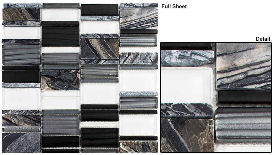 Tile Size: Random size blocksSheet Size: 11 3/4” x 11 7/8”Sheet Coverage: .97 SQFRows Per Sheet: 4Tiles Per Sheet: 56Cut Into Borders: AnyTile Thickness: 5/16” (8 mm)Grout Joints: 1/16” (2 mm)All tiles are mesh mounted.Due to the variance in installation methods, grout colors, lighting, image variances and computer monitor settings; the images above may not accurately represent the true color of the products after installation.Therefore Glazzio Tiles always recommends that tiles not be purchased from an image of any kind.** Installation of this product in a wet application must be set with epoxy mortar and epoxy grout.*** In order to avoid stains and discoloration as well as to prevent grout from getting into the pores of the tile; all Crackled Glass, Crackled Glaze and Stone products should always be sealed prior to grouting.