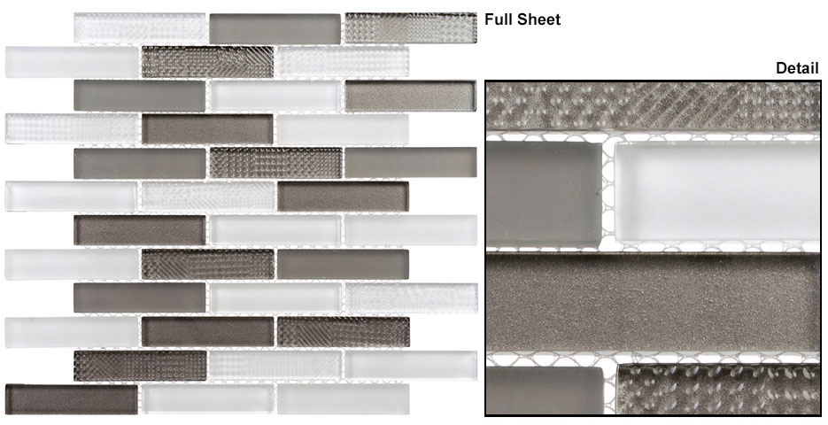 Tile Size: 1” x 4”Sheet Size: 11 3/4” x 11 3/4”Sheet Coverage: .96Rows Per Sheet: 12Tiles Per Sheet: 36Cut into Borders: AnyTile Thickness: 5/16” (8 mm)Grout Joints: 1/16” (2 mm)All tiles are meshed mountedDue to the variance in installation methods, grout colors, lighting, image variances and computer monitor settings; the images above may not accurately represent the true color of the products after installation.Therefore Glazzio Tiles always recommends that tiles not be purchased from an image of any kind.** Installation of this product in a wet application must be set with epoxy mortar and epoxy grout.