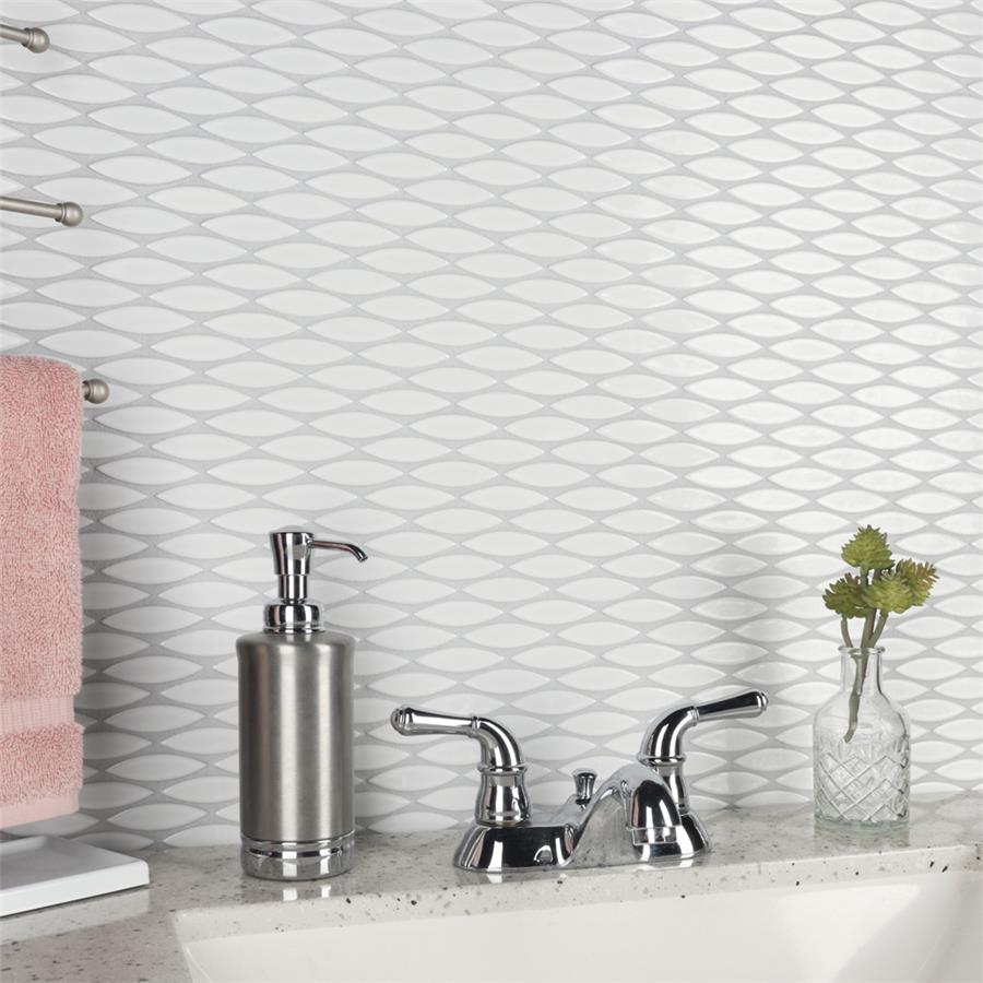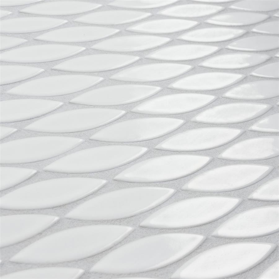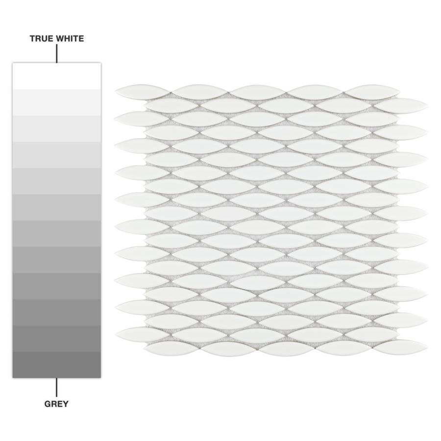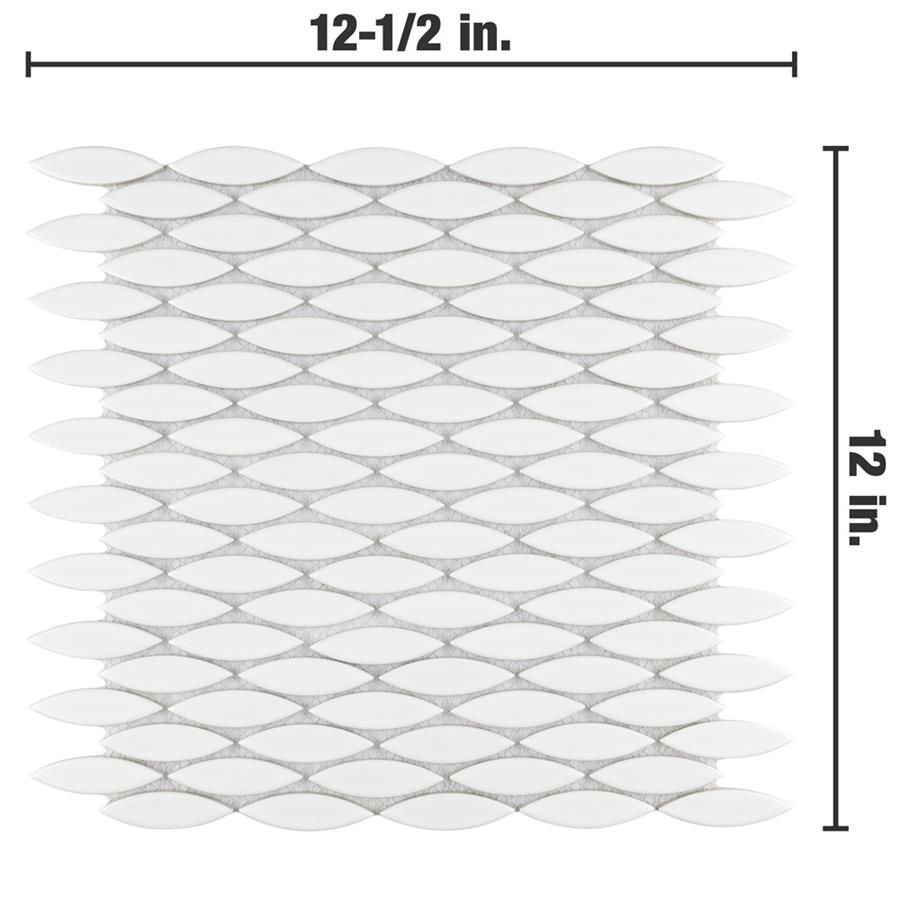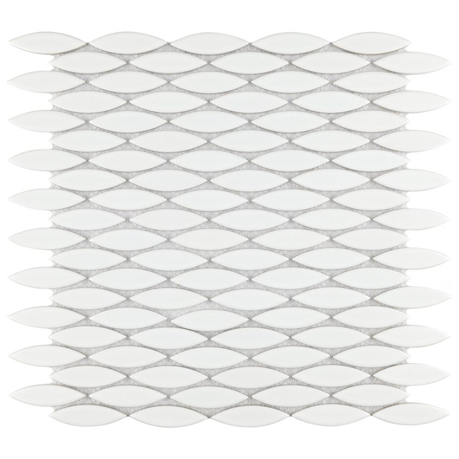 Our Pescado Glossy Blanco 12” x 12-1/2” Porcelain Mosaic Floor and Wall Tile captures the timeless appeal of mosaic tile in a modern geometric format. Featuring elongated oval tiles in a glossy solid white color tone, this tile adds subtle depth to any space. This floor and wall mosaic is unique yet simplistic enough to integrate into any design, ranging from traditional style renovations to modern home projects. Its impervious and frost-resistant features make this an ideal tile for both indoor and outdoor residential use, including backsplashes, bathrooms, showers and kitchens. This tile is a perfect choice on its own or paired with other products in the Pescado Collection. Tile is the better choice for your space. This tile is made from natural ingredients, making it a healthy choice as it is free from allergens, VOCs, formaldehyde and PVC.