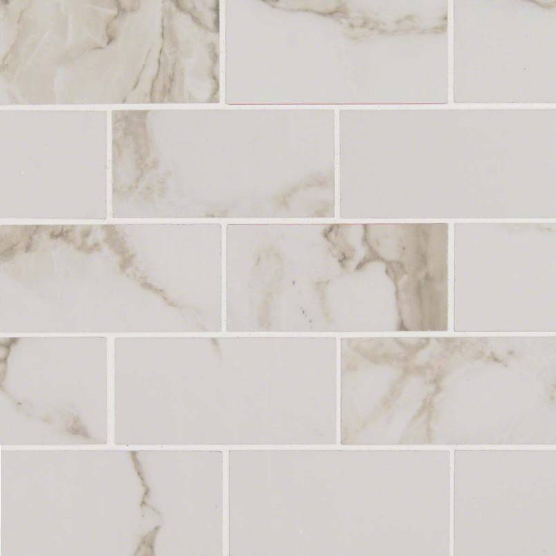 Calacatta 2×4 porcelain tiles from MSI’s Pietra collection feature a soft white background and warm gray veins reminiscent of natural marble. These beautiful tiles are suitable for a wide range of interior design projects including shower surrounds, kitchen backsplashes, and other tile projects.Flooring Info:Residential: YesCommercial Light: Yes