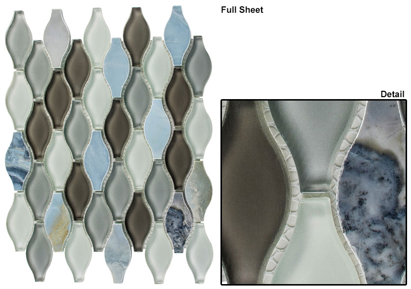 Sheet Size: 10 1/4” x 12 1/4”Sheet Coverage: .87 SQFTile Size: Unique ShapesTiles per sheet: 39Tile thickness: 1/4″Grout Joints: 1/8″Sheet Mount: Mesh BackedDue to the variance in installation methods, grout colors, lighting, image variances and computer monitor settings; the images above may not accurately represent the true color of the products after installation.Therefore Glazzio Tiles always recommends that tiles not be purchased from an image of any kind.** In order to avoid stains and discoloration as well as to prevent grout from getting into the pores of the tile; all Crackled Glass, Crackled Glaze and Stone products should always be sealed prior to grouting.