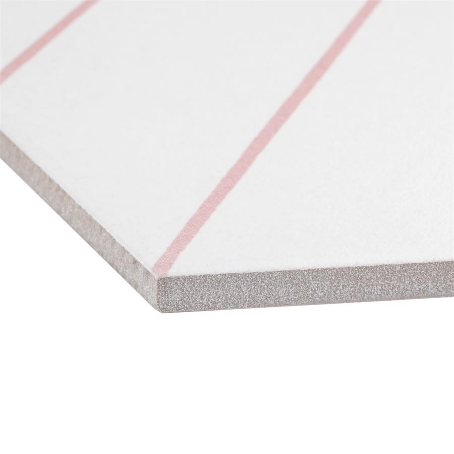 Our Porto Savona Hex Rose 8-5/8 in. x 9-7/8 in. Porcelain Floor and Wall Tile features a snow white color tone accented with thin faded light pink lines extending across the tile. This mesmerizing tile pattern is sure to liven up your space and give it a modern spin. Its geometric shape is unique yet simplistic enough to integrate into any design, ranging from traditional style renovations to modern home projects. The medium-sheen glazed surface offers a sleek look that adds extra character to this unique artistic tile. Its impervious, frost resistant and durable features make this an ideal tile for both commercial and residential indoor and outdoor use, including backsplashes, bathrooms, kitchens and patios. This tile is a perfect choice on its own or coordinate with other products in the Porto series.Tile is the better choice for your space. This tile is made from natural ingredients, making it a healthy choice as it is free from allergens, VOCs, formaldehyde and PVC.