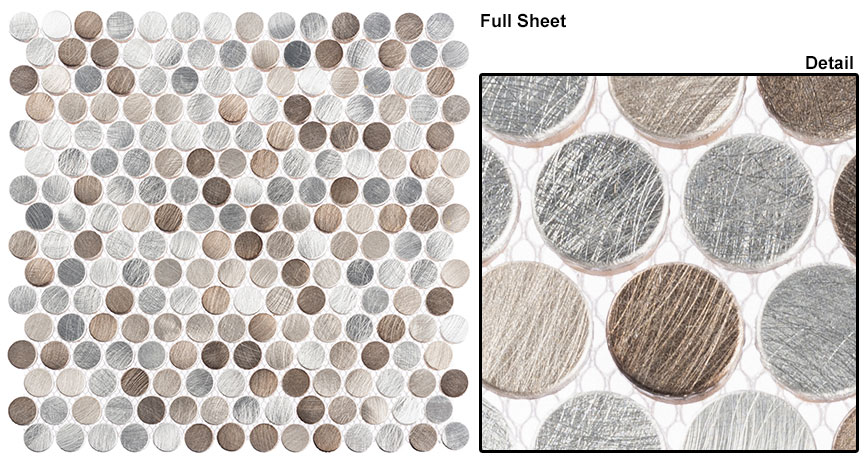 Tile Size: ¾” penny roundSheet Size: 11 4/5″ x 11 4/5″Sheet Coverage: .97 SQFRows Per Sheet: 16Tiles Per Sheet: 224Cut into Borders: Every 2 rowsTile Thickness: 5/16″ (8mm)Grout Joint: 1/16″ (2mm)Mesh Mounted: YesDue to the variance in installation methods, grout colors, lighting, image variances and computer monitor settings; the images above may not accurately represent the true color of the products after installation.Therefore Glazzio Tiles always recommends that tiles not be purchased from an image of any kind.