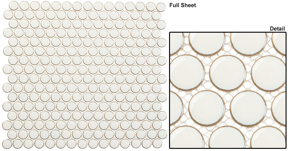 Tile Size: 3/4″ Penny RoundSheet Size: 11 3/8″ x 12 15/16″Sheet Coverage: .97 SQFRows Per Sheet: 16Tiles Per Sheet: 240Cut into Borders: Every 2 rowsTile Thickness: 3/16″ (5mm)Grout Joint: 1/16″ (2mm)Mesh Mounted: YesDue to the variance in installation methods, grout colors, lighting, image variances and computer monitor settings; the images above may not accurately represent the true color of the products after installation.Therefore Glazzio Tiles always recommends that tiles not be purchased from an image of any kind.
