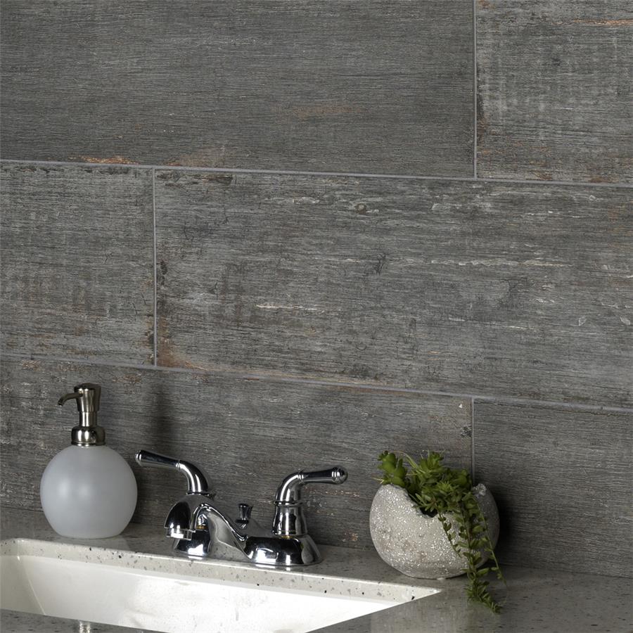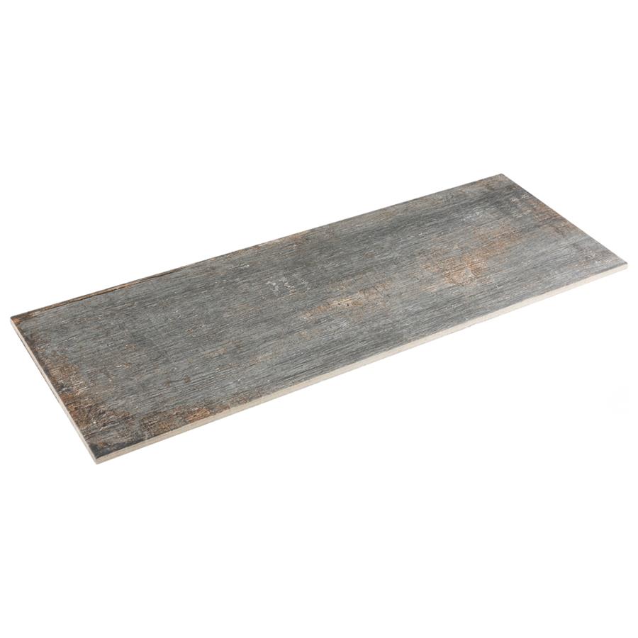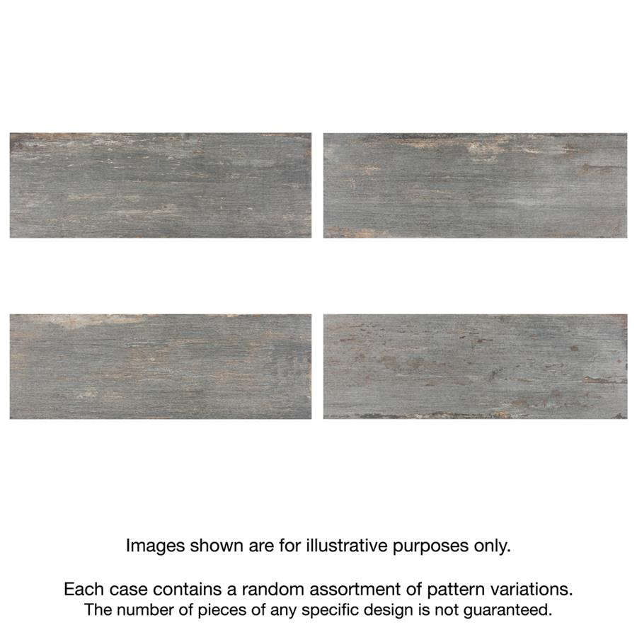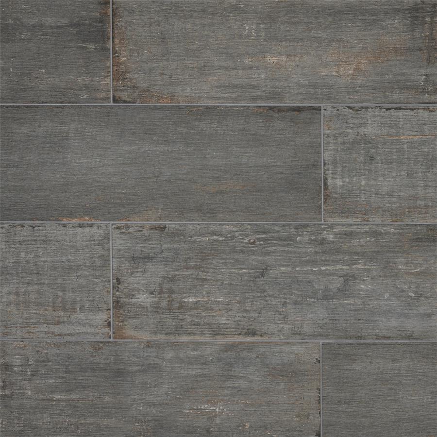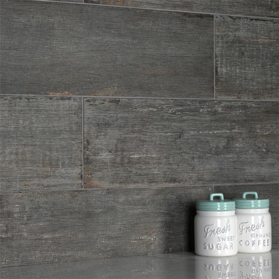 The Retro Cendra 8-1/4 in. x 23-1/2 in. Porcelain Floor and Wall Tile is a breathtaking addition to our collection of wood-look tiles. Crafted in Spain, the smoke grey glaze features a meticulously detailed grain accented in shades of ochre. To add further contrast and depth, this tile has subtle bumps and grooves that echo the texture of real wood. The finishing touch on this large plank is the imitations of scuffs and spots, which gives this tile an antiquated appearance reminiscent of distressed painted wood. This extruded porcelain tile has high variation for a one-of-a-kind look that can only be achieved through the partially handmade process. This tile offers endless design possibilities when paired with other products in the Retro series. This impervious, matte tile will look great in all indoor and outdoor locations, including walls, floors and patios.