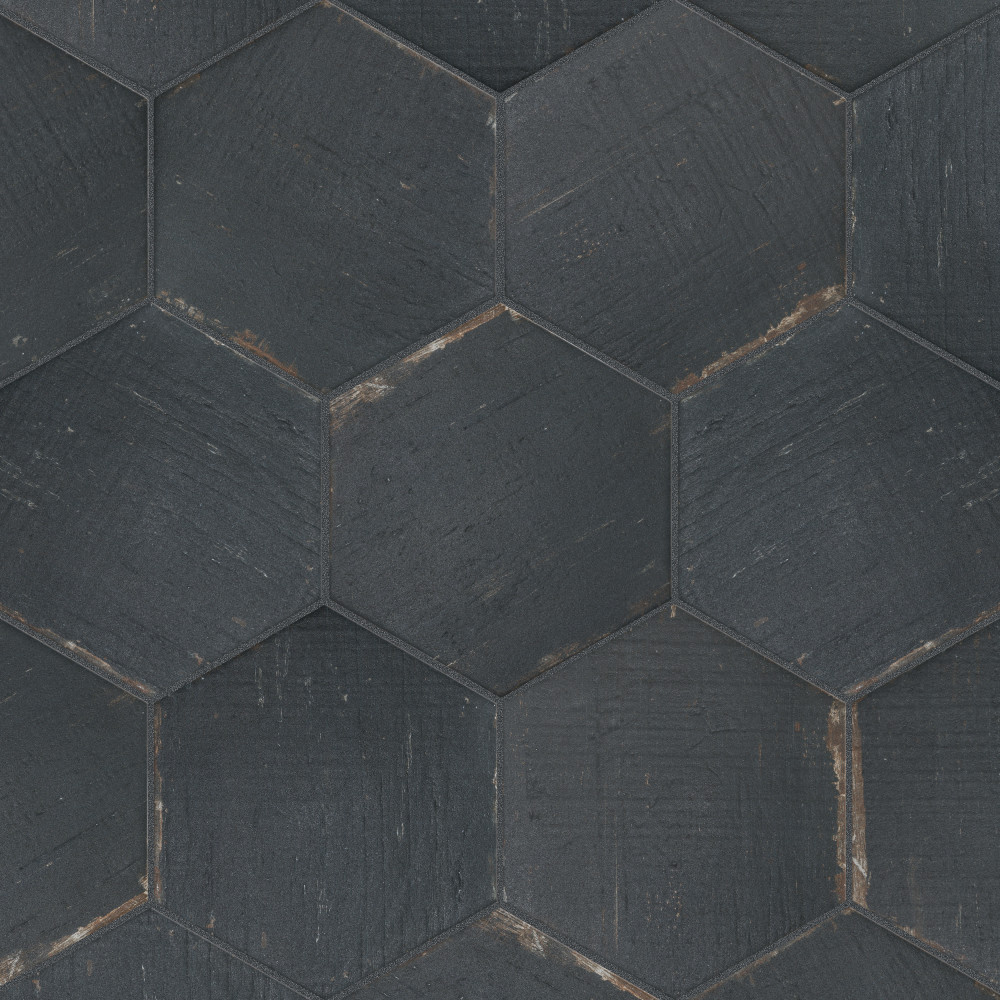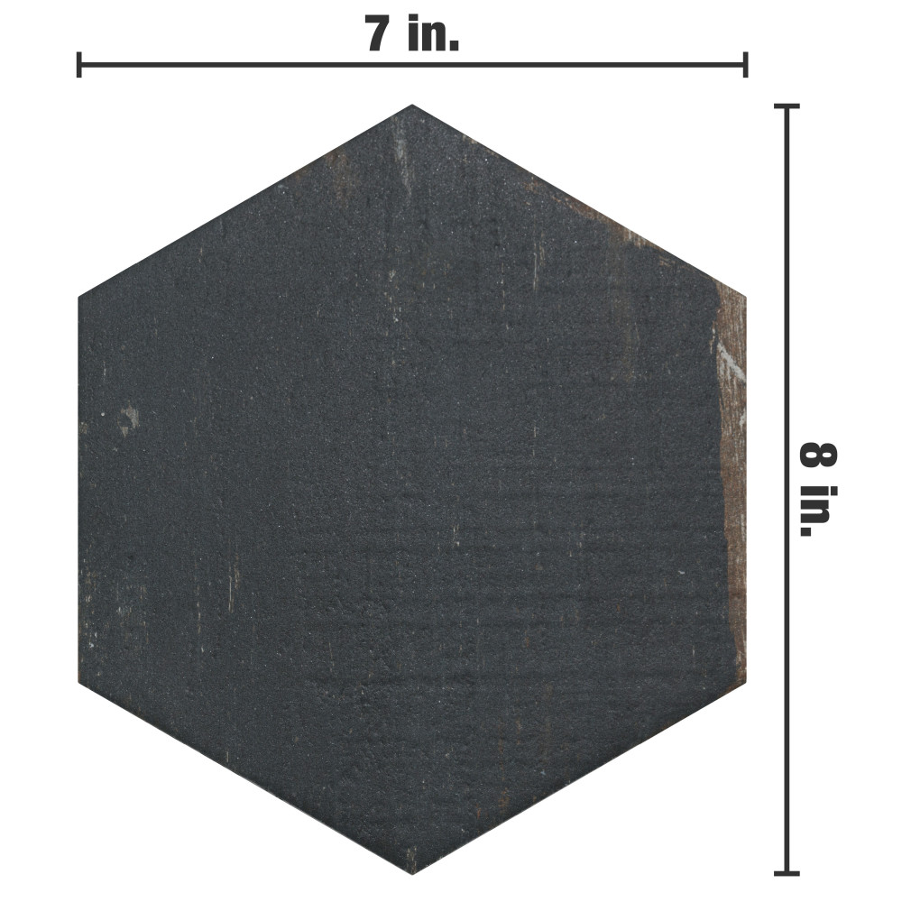 Retro Mini Hex Nero 7 in. x 8 in. Porcelain Floor and Wall Tile