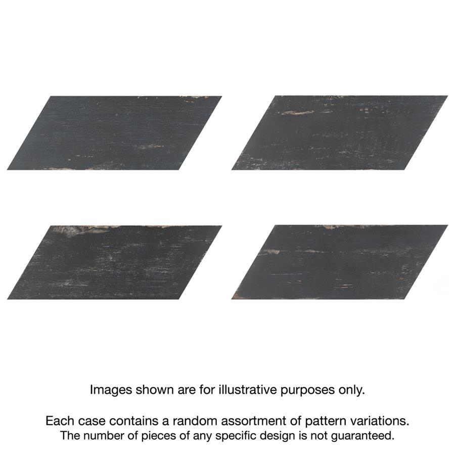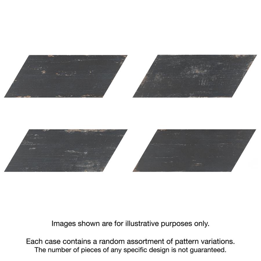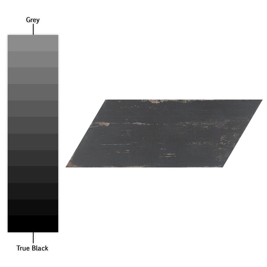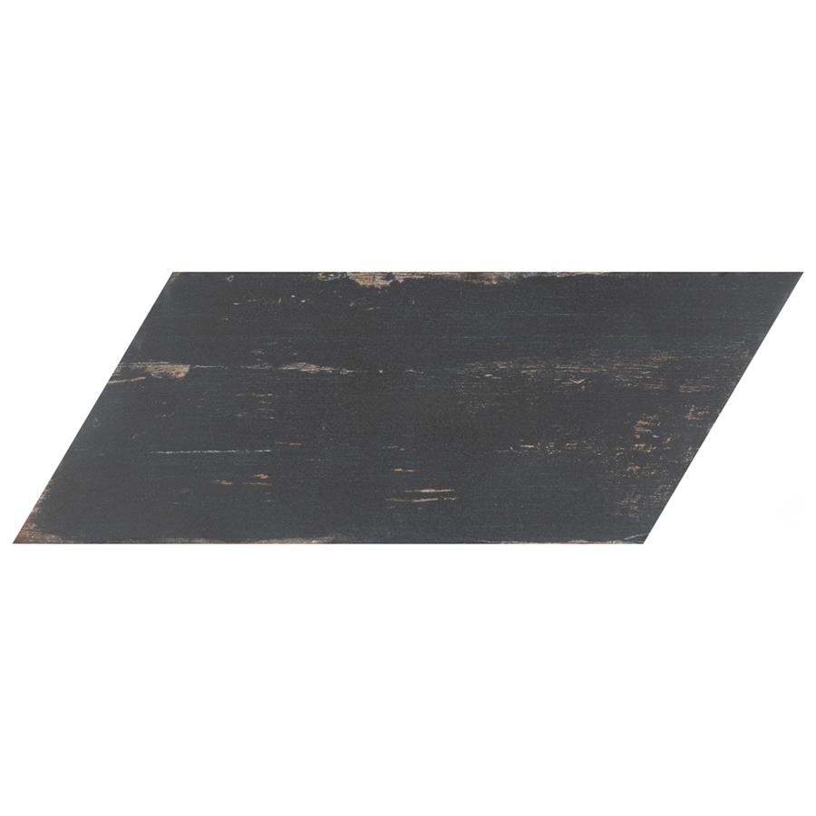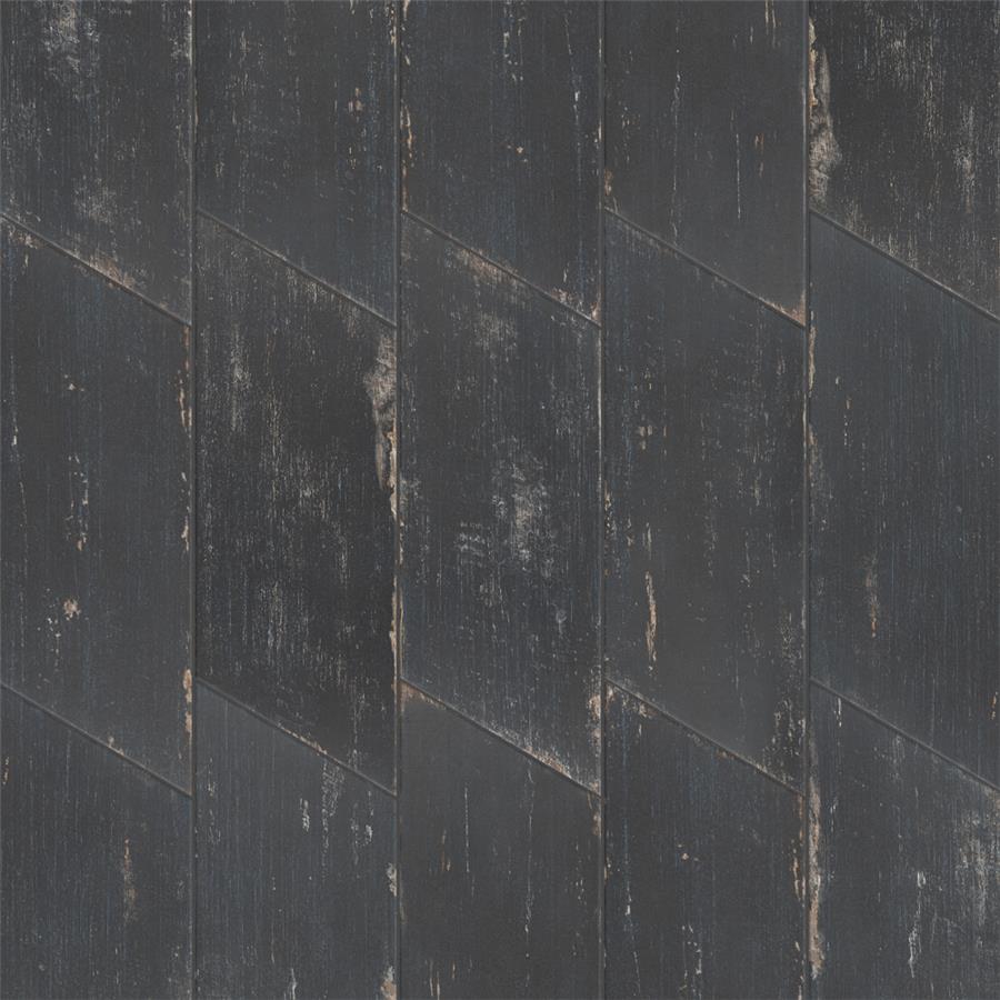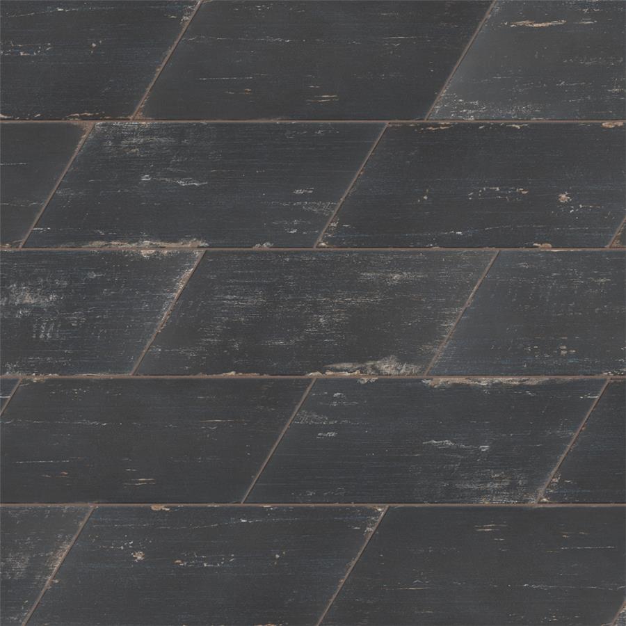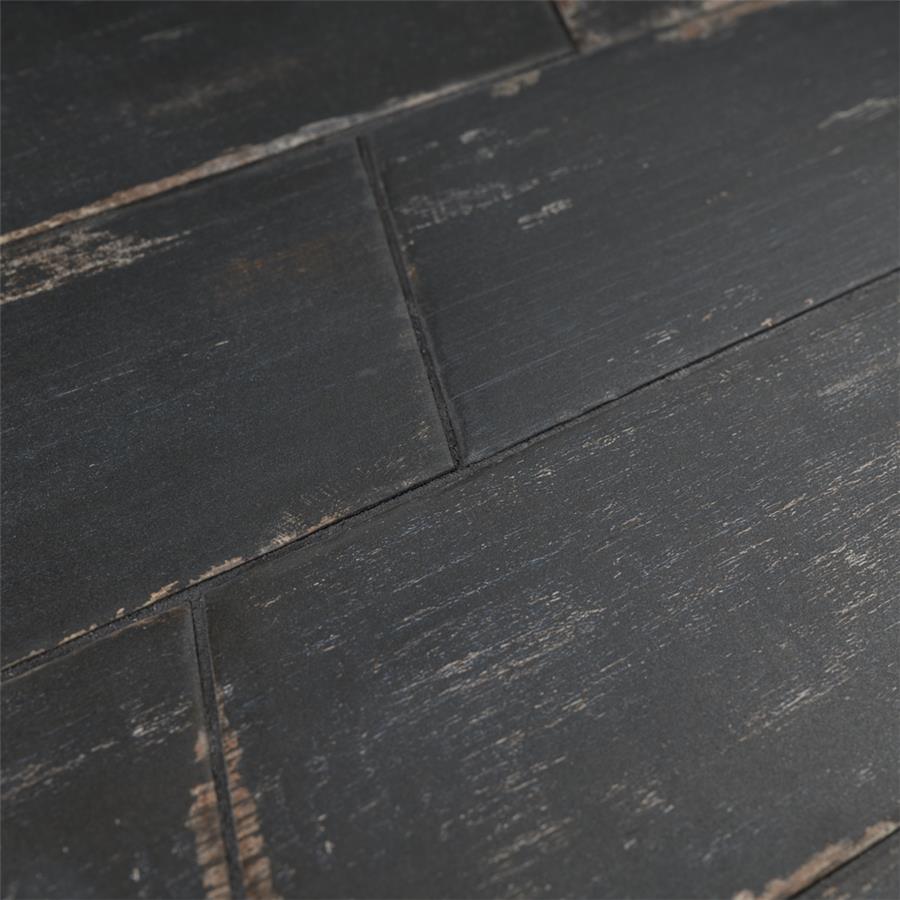 The Retro Naveta Nero 7-1/8 in. x 16-3/8 in. Porcelain Floor and Wall Tile is a breathtaking addition to our collection of wood-look tiles. Crafted in Spain, the soot black glaze features a meticulously detailed grain accented in shades of tan. To add further contrast and depth, this tile has subtle bumps and grooves that echo the texture of real wood. The finishing touch on this large plank is the imitations of scuffs and spots, which gives this tile an antiquated appearance reminiscent of distressed painted wood. This extruded porcelain tile has high variation for a one-of-a-kind look that can only be achieved through the partially handmade process. This tile offers endless design and layout possibilities when paired with other products in the Retro series. This impervious, matte tile will look great in all indoor and outdoor locations, including walls, floors and patios.