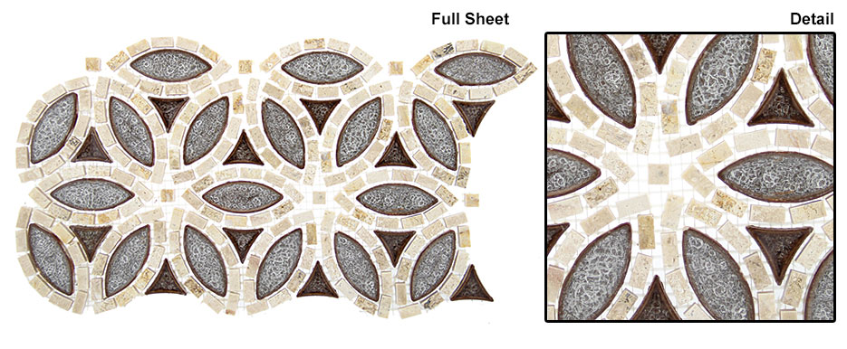 Tile size: multi size piecesSheet size: 13 1/2″ x 7 5/8″Sheet coverage: .71 square feetTiles per sheet: 198Tile thickness: 5/16″ (8mm)Grout joints: varies at different parts of the sheetThis product is mesh mountedDue to the variance in installation methods, grout colors, lighting, image variances and computer monitor settings; the images above may not accurately represent the true color of the products after installation.Therefore Glazzio Tiles always recommends that tiles not be purchased from an image of any kind.** In order to avoid stains and discoloration as well as to prevent grout from getting into the pores of the tile; all Crackled Glass, Crackled Glaze and Stone products should always be sealed prior to grouting.