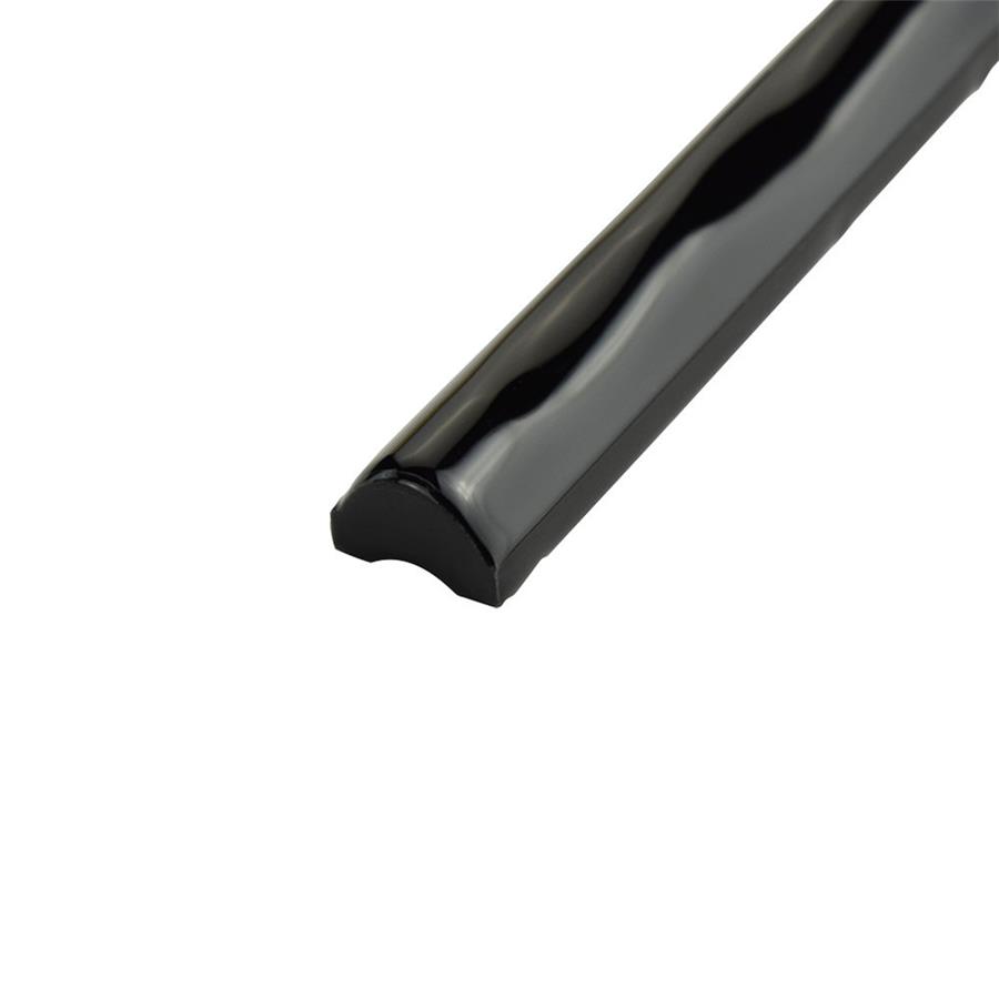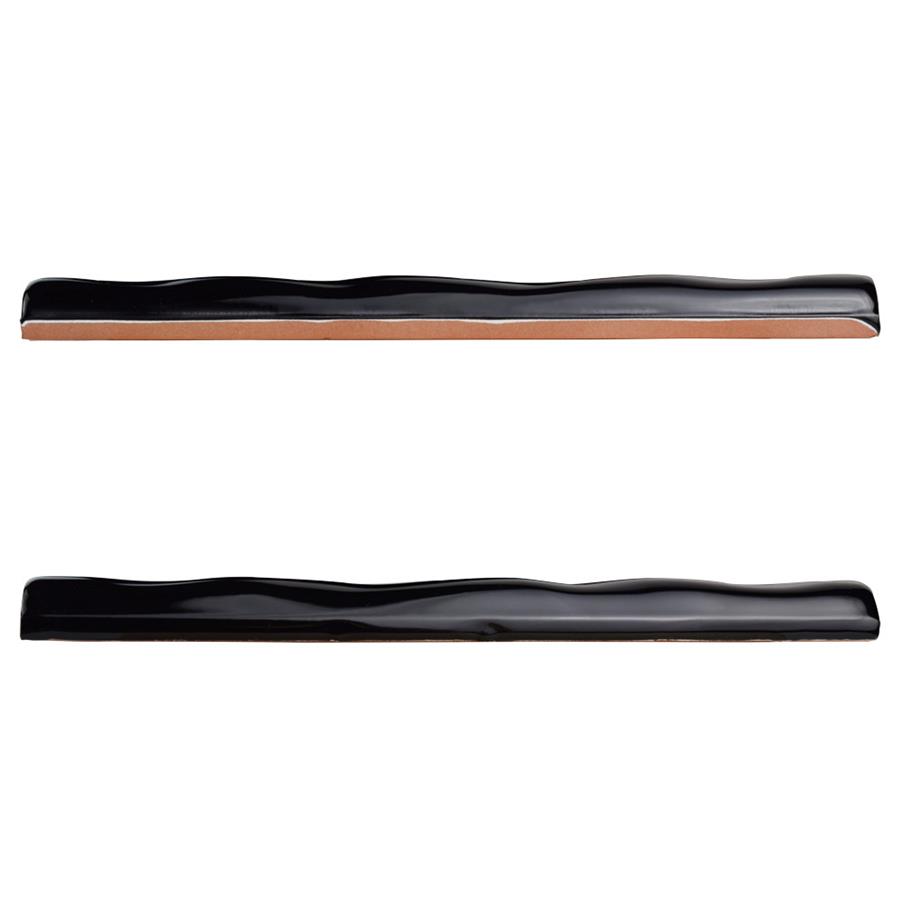 The SomerTile Rugosa Nero 7/8 in. x 7-7/8 in. Ceramic Cigarro Bordura Wall Trim Tile is a modern trim piece great for separating two looks. These contemporary tiles feature an uneven surface for added dimension. This black trim features a high sheen finish for a crisp, clean design. Pair this trim with many of our other products to complete any modern look. Tile is the better choice for your space. This tile is made from natural ingredients, making it a healthy choice as it is free from allergens, VOCs, formaldehyde and PVC.