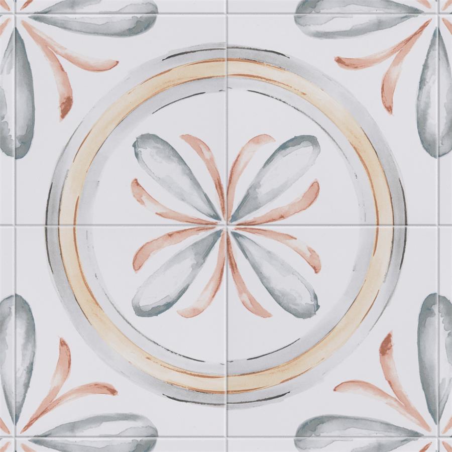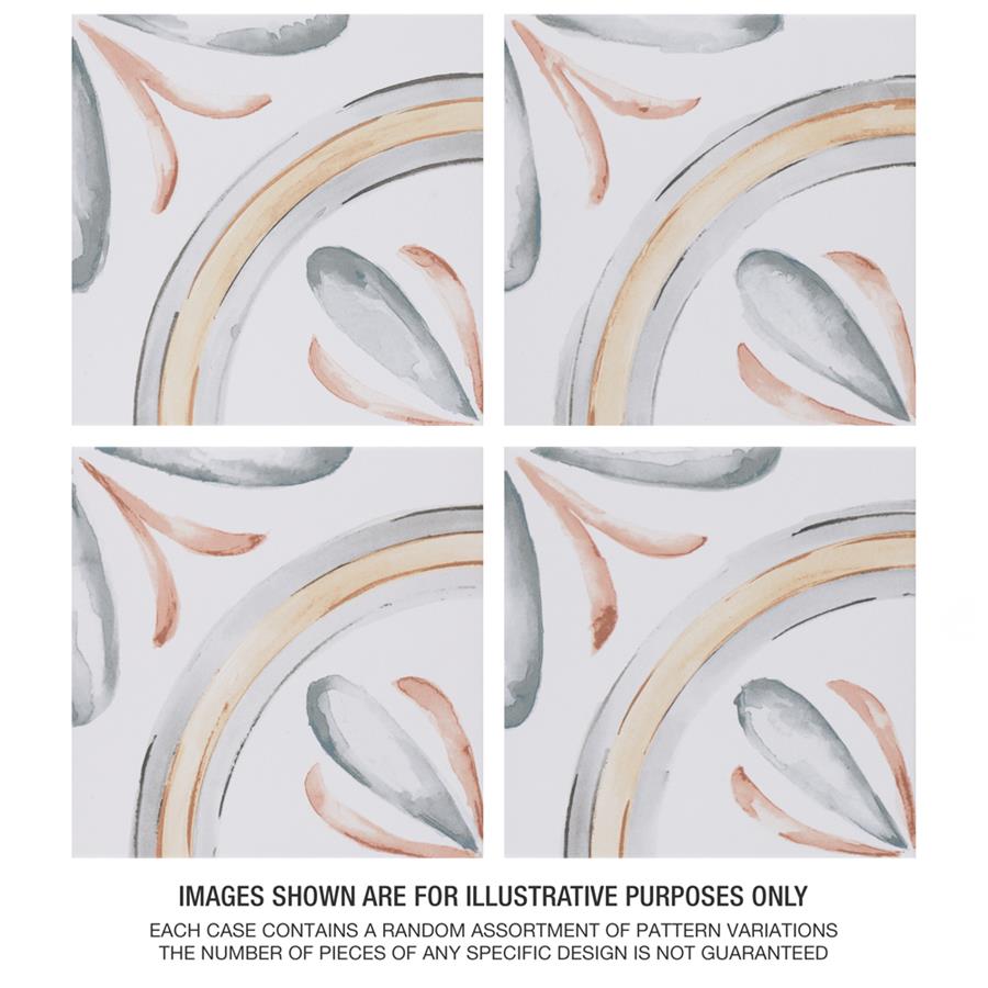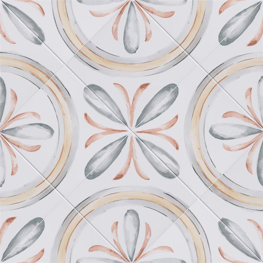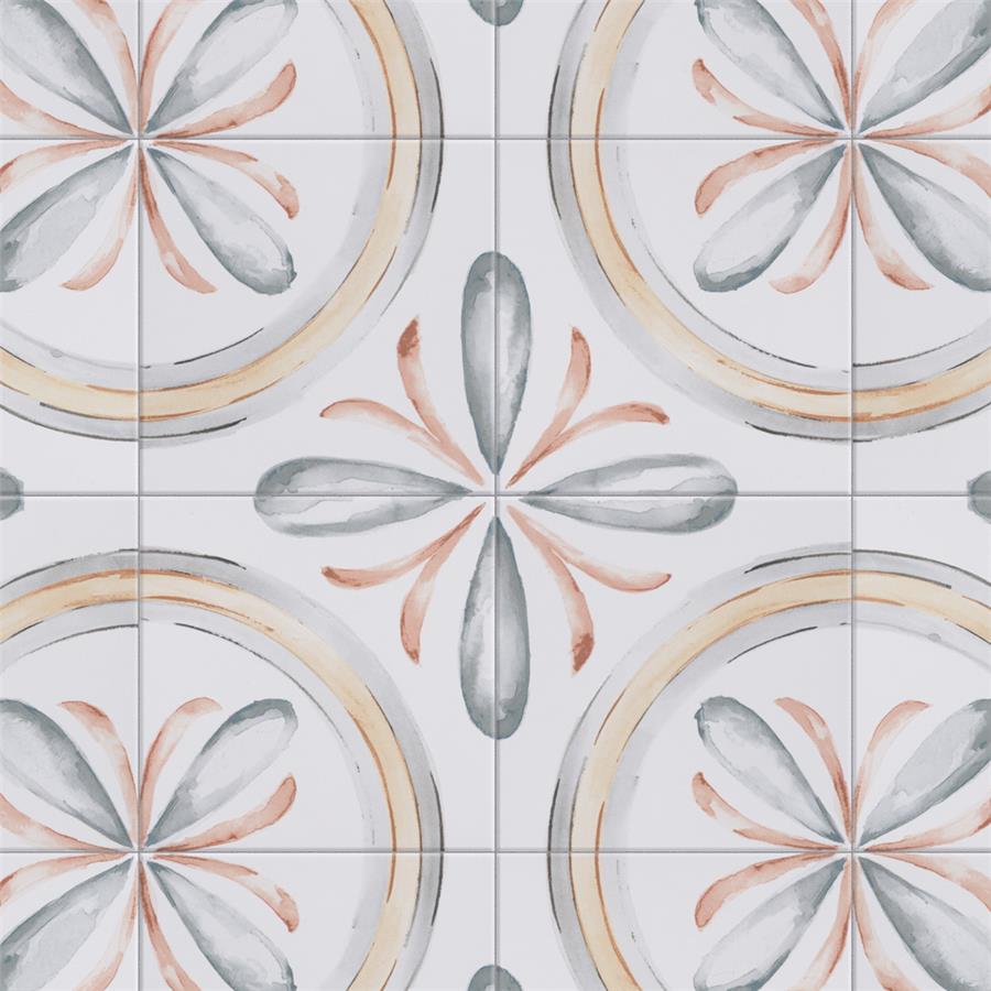 Inspired by traditional hand-painted Mediterranean tiles, our Saint Germain Chaud Deco Rivette Porcelain Floor and Wall Tile offers vibrant artisanal beauty. This tile features old-world floral patterns in sage green, ochre orange and grey watercolor inspired tones that are set amongst an off-white base glaze. Richly detailed with a smooth, matte finish, this on-trend porcelain tile offers charming decorative appeal that can blend into virtually any design theme, ranging from contemporary projects to traditional installations. Its impervious, frost-resistant, and durable features make this an ideal choice for both commercial and residentials indoor and outdoor installations including kitchens, bathrooms, backsplashes, showers, entryways, and patios. This tile is a perfect choice on its own or coordinated with other products in the Saint Germain series. Tile is the better choice for your space. This tile is made from natural ingredients, making it a healthy choice as it is free from allergens, VOCs, formaldehyde, and PVC.