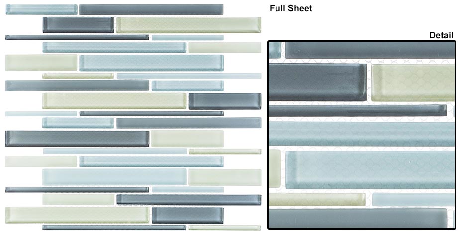Tile Size: Random Sizes Matted & GlossySheet Size: 12” x 12”Sheet Coverage: 1 SQFRows Per Sheet: 18Tiles Per Sheet: 36Cut into Borders: Every 6 RowsTile Thickness: 5/16” (8 mm)Grout Joint: 1/16” (2 mm)All tiles are mesh mounted.Due to the variance in installation methods, grout colors, lighting, image variances and computer monitor settings; the images above may not accurately represent the true color of the products after installation.Therefore Glazzio Tiles always recommends that tiles not be purchased from an image of any kind.