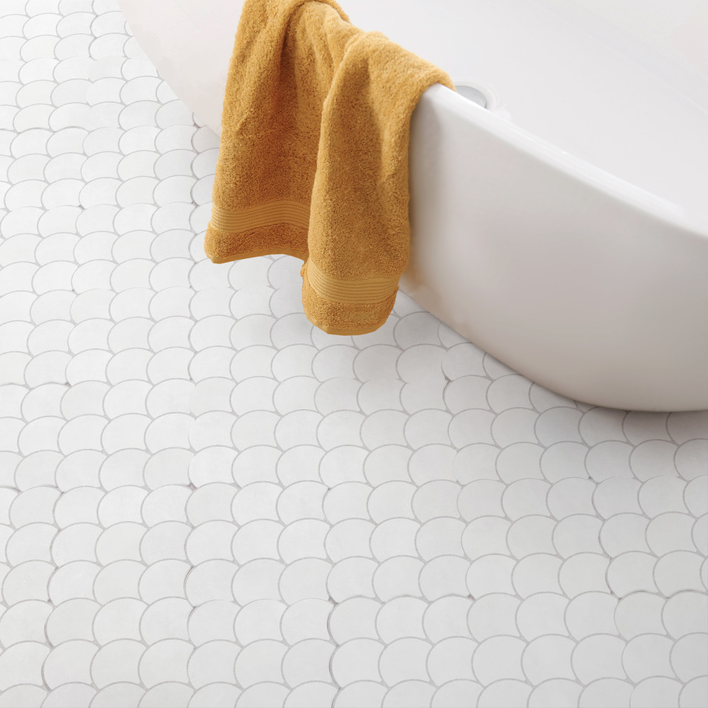 Offering a simplistic look, our Scala White Porcelain Floor and Wall Tile features a smooth, satin finish, making it a great choice for your space. With its impervious, frost-resistant features, this white fish scale tile is an ideal selection for both indoor and outdoor commercial and residential installations, including kitchens, bathrooms, backsplashes, showers, hallways, entryways, patios and fireplace facades. This tile is a perfect choice on its own or paired with other products in the Scala Collection. Tile is the better choice for your space!