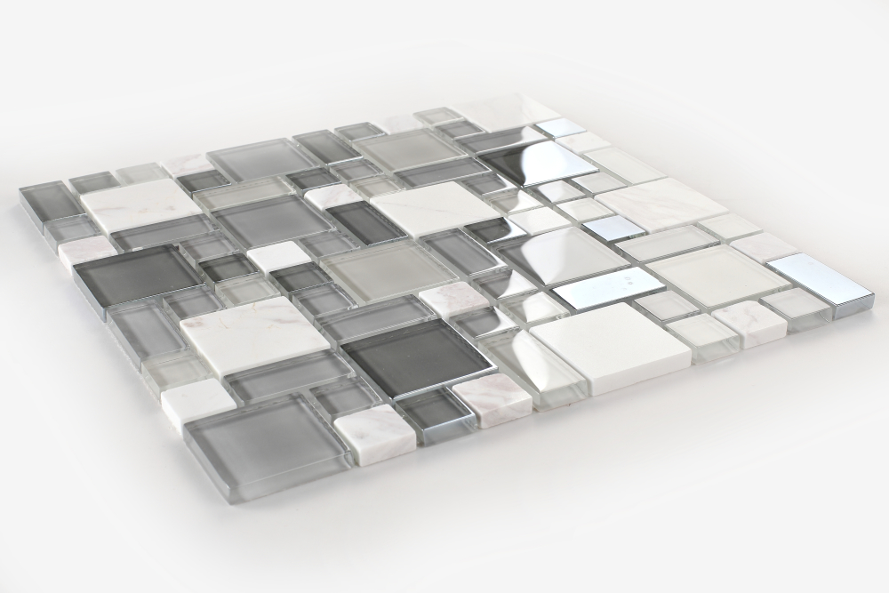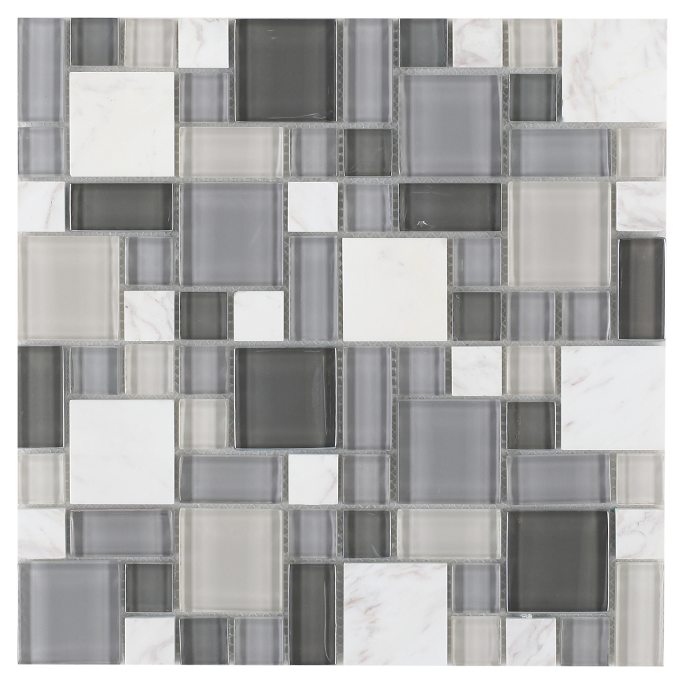 Product Sold By The SheetSea- Multi-Size Carrara Mixed with Grey Glass.Glass tile thin-set required. We recommend: Custom Building Products White Premium Glass Tile Thin-Set Mortar.Suggested Grout Color: Bostik Dimension Diamond H600WARNING: This product can expose you to chemicals including crystalline silica (airborne particles of respirable size) in dust created during fabrication/installation if the product is dry cut/ground or pulverized, which are known to the State of California to cause cancer. For more information, go to https://www.p65warnings.ca.gov/.