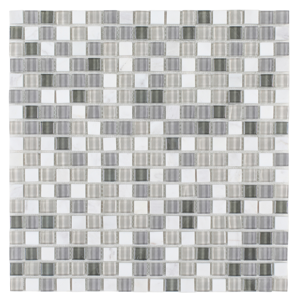 Product Sold By The SheetMilano Series: 2/3″x2/3″ Carrara marble and multi-grey glass mosaic.Glass tile thin-set required. We recommend: Custom Building Products White Premium Glass Tile Thin-Set Mortar.Suggested Grout Color: Bostik Dimension Diamond H600WARNING: This product can expose you to chemicals including crystalline silica (airborne particles of respirable size) in dust created during fabrication/installation if the product is dry cut/ground or pulverized, which are known to the State of California to cause cancer. For more information, go to https://www.p65warnings.ca.gov/.