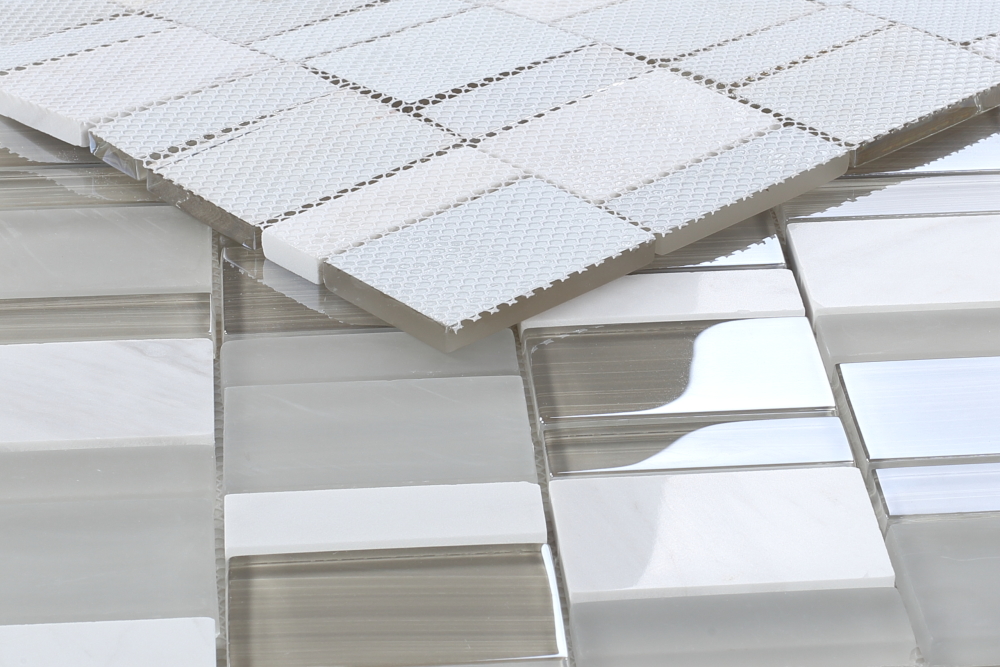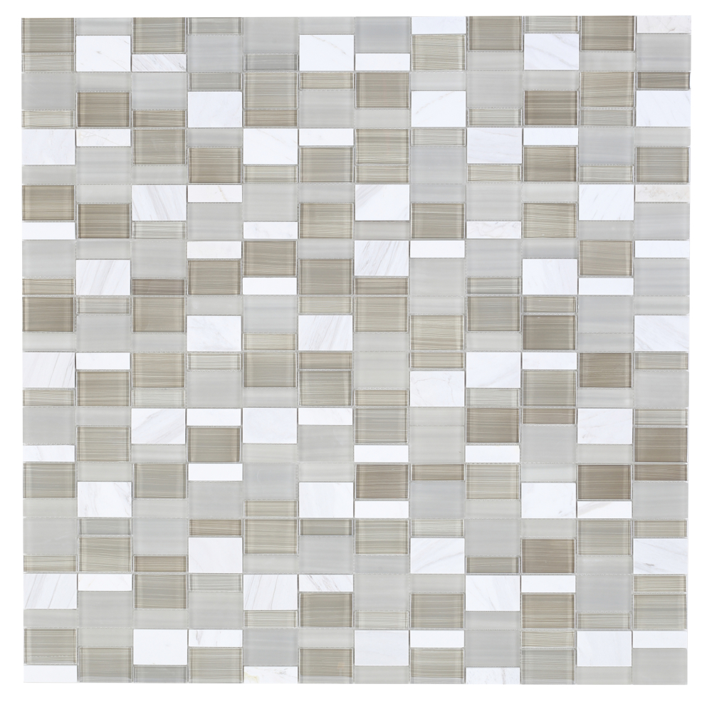 Product Sold By The SheetSea Salt Prime- very light grey glass with carrara marble mosaic.Glass tile thin-set required. We recommend: Custom Building Products White Premium Glass Tile Thin-Set Mortar.Suggested Grout Color: Bostik Dimension Diamond H600WARNING: This product can expose you to chemicals including crystalline silica (airborne particles of respirable size) in dust created during fabrication/installation if the product is dry cut/ground or pulverized, which are known to the State of California to cause cancer. For more information, go to https://www.p65warnings.ca.gov/.
