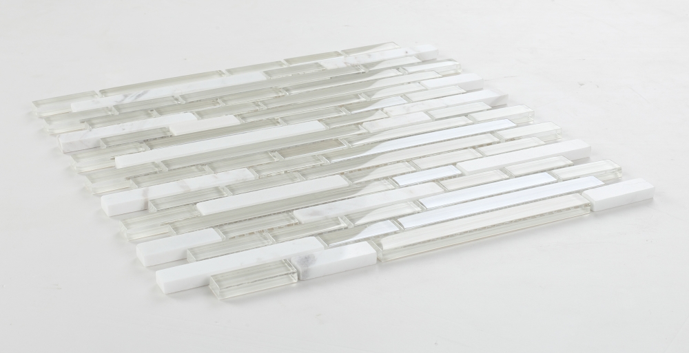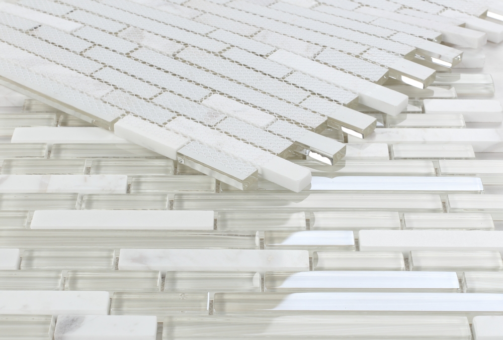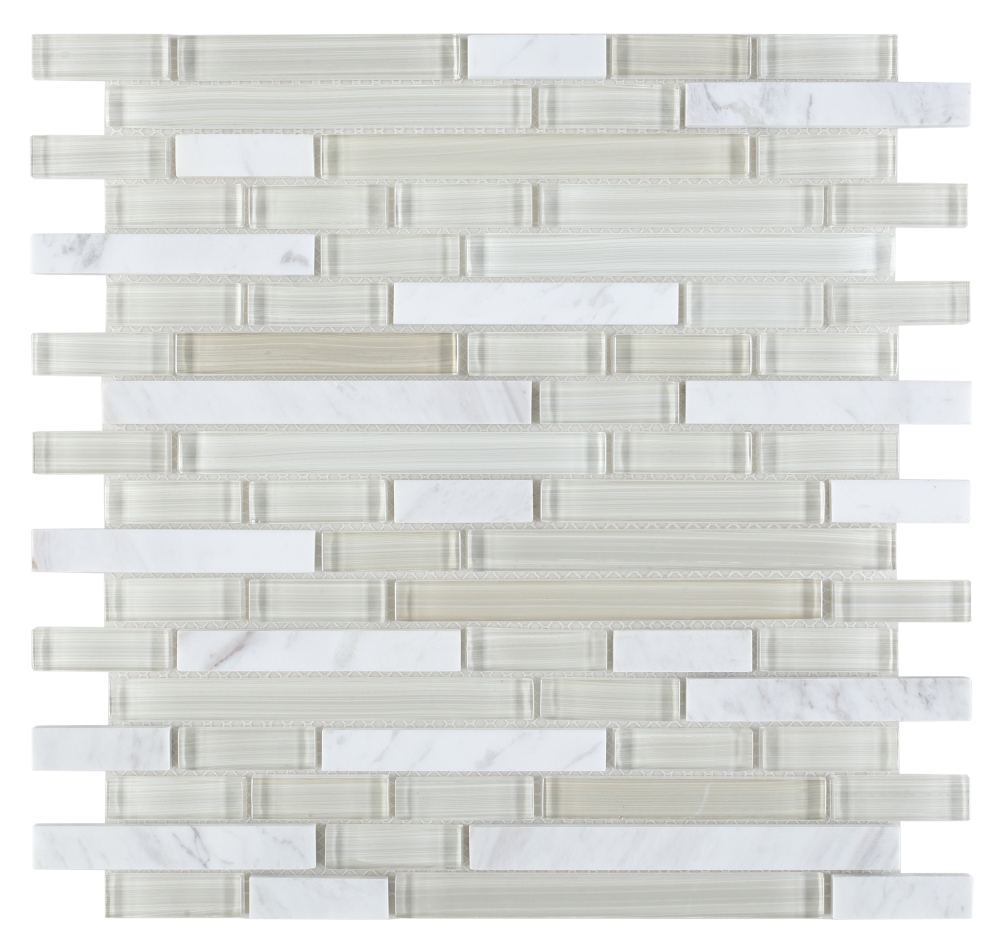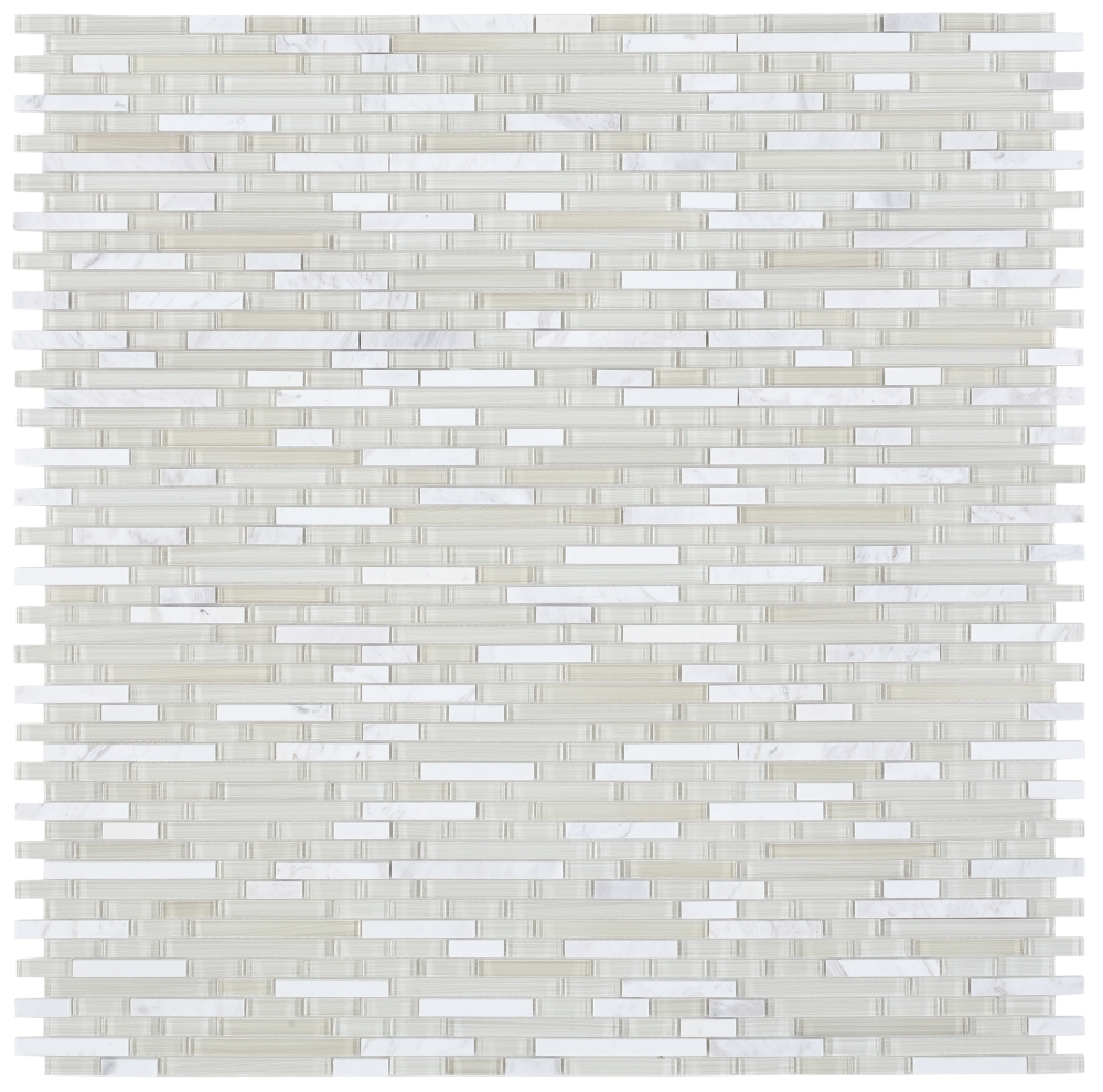 Product Sold By The SheetSea Salt Stack – very light grey glass with white carrarra marble mosaic in offset layout.Glass tile thin-set required.Suggested Grout Color: Bostik Dimension Diamond H600WARNING: This product can expose you to chemicals including crystalline silica (airborne particles of respirable size) in dust created during fabrication/installation if the product is dry cut/ground or pulverized, which are known to the State of California to cause cancer. For more information, go to https://www.p65warnings.ca.gov/.