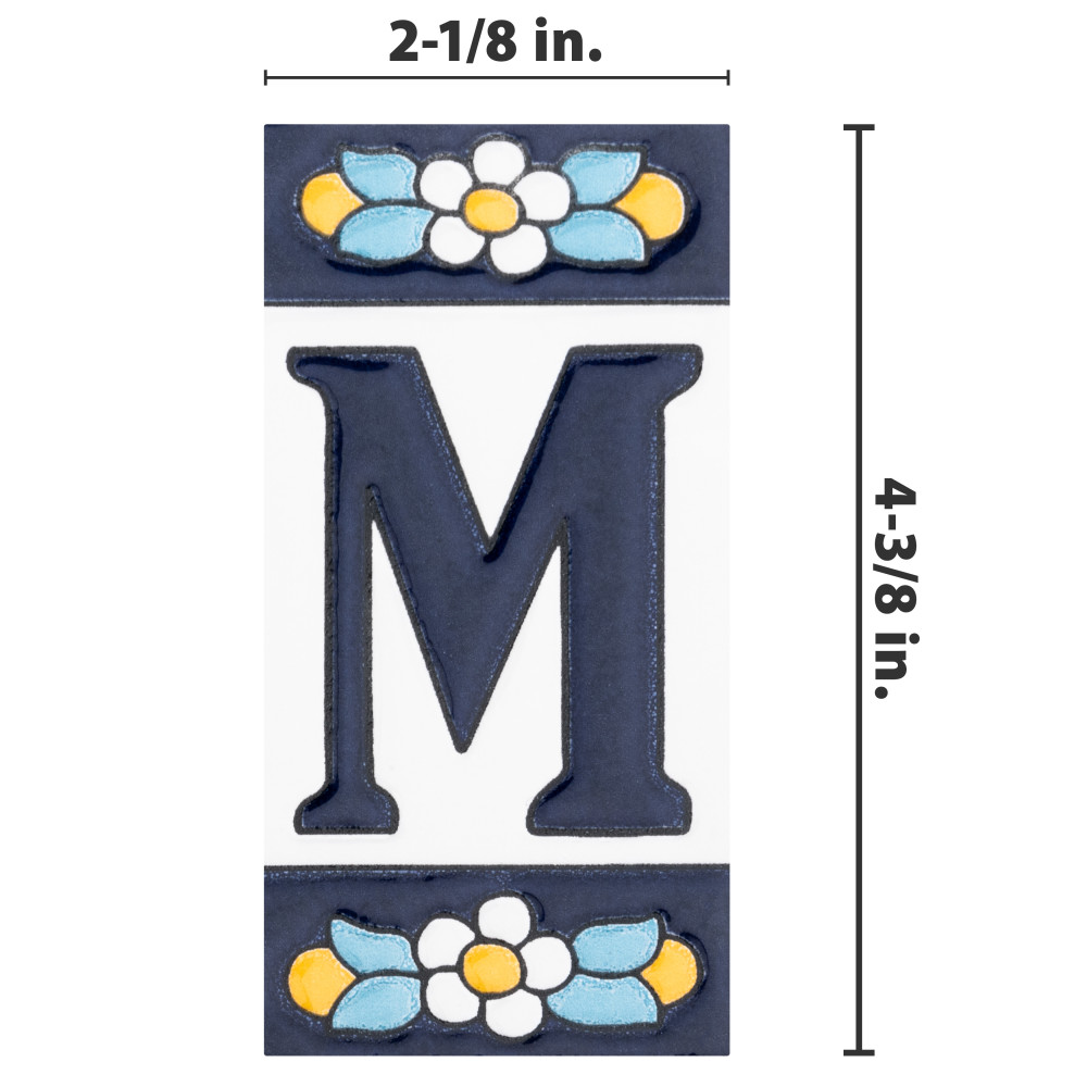 Sevillano Flora Address Letters M 2-1/8 in. x 4-3/8 in. Ceramic Wall Tile