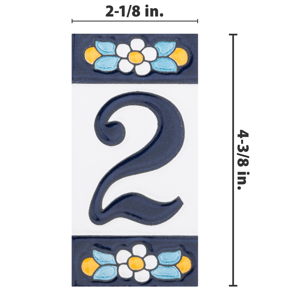 Sevillano Flora Address Numbers 2 2-1/8 in. x 4-3/8 in. Ceramic Wall Tile