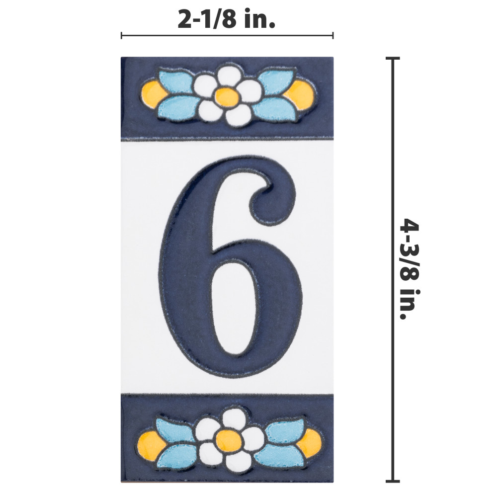 Sevillano Flora Address Numbers 6 2-1/8 in. x 4-3/8 in. Ceramic Wall Tile