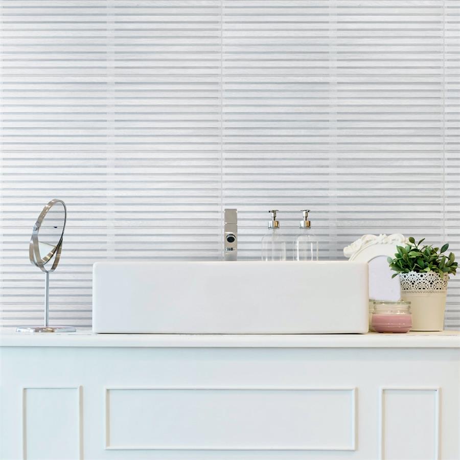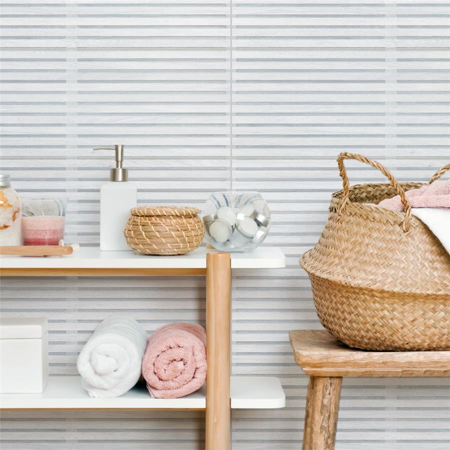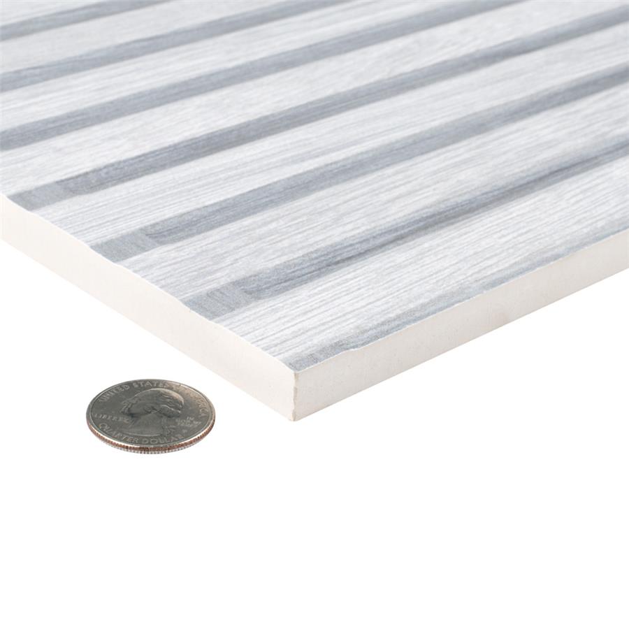 Featuring a simple yet captivating design, our Spa Perla 12 in. x 35 in. Ceramic Wall Tile introduces eye-catching beauty that provides character and personality wherever it is installed. With a textured three-dimensional surface and linear patterns that run laterally, this enlarged wall tile creates a dynamic and soothing aesthetic that has the ability to enhance any space. Dulled cool toned shades of light grey blend with meticulous wood grains, offering a subtle resemblance of a natural wood slat fence. Given the versatility of its format, this tile can be integrated into any design, ranging from traditional style renovations to modern home projects. Intended for interior wall use, it is an ideal choice for kitchen backsplashes, bathroom showers and fireplace facades.Tile is the better choice for your space. This tile is made from natural ingredients, making it a healthy choice as it is free from allergens, VOCs, formaldehyde and PVC.