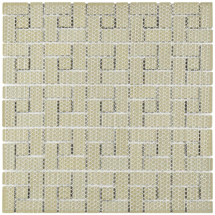 • 11" x 11" SimplyStick Mosaix Daphne White and glass Blend Mosaic Natural Stone Tile Rectangle Brick Joint Mix
