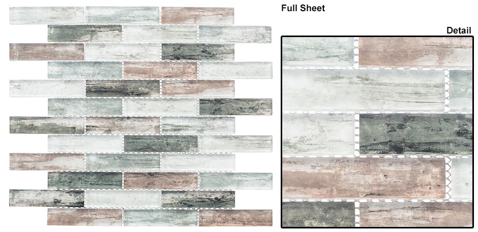 Tile Size: 7/8″x 3 3/4″Sheet Size: 11 3/4″x 11 3/4″Sheet Coverage: .96 SQFRows Per Sheet: 12Tiles Per Sheet: 36Cut into Borders: Every 2 rowsTile Thickness: 5/16″ (8mm)Grout Joint: 1/16″ (2mm)Mesh Mounted: YesDisclaimer:In order to avoid stains and discoloration as well as to prevent grout from getting into the pores of the tile; this product should always be sealed prior to grouting.Due to the variance in installation methods, grout colors, lighting, image variances and computer monitor settings; the images above may not accurately represent the true color of the products after installation.Therefore Glazzio Tiles always recommends that tiles not be purchased from an image of any kind.