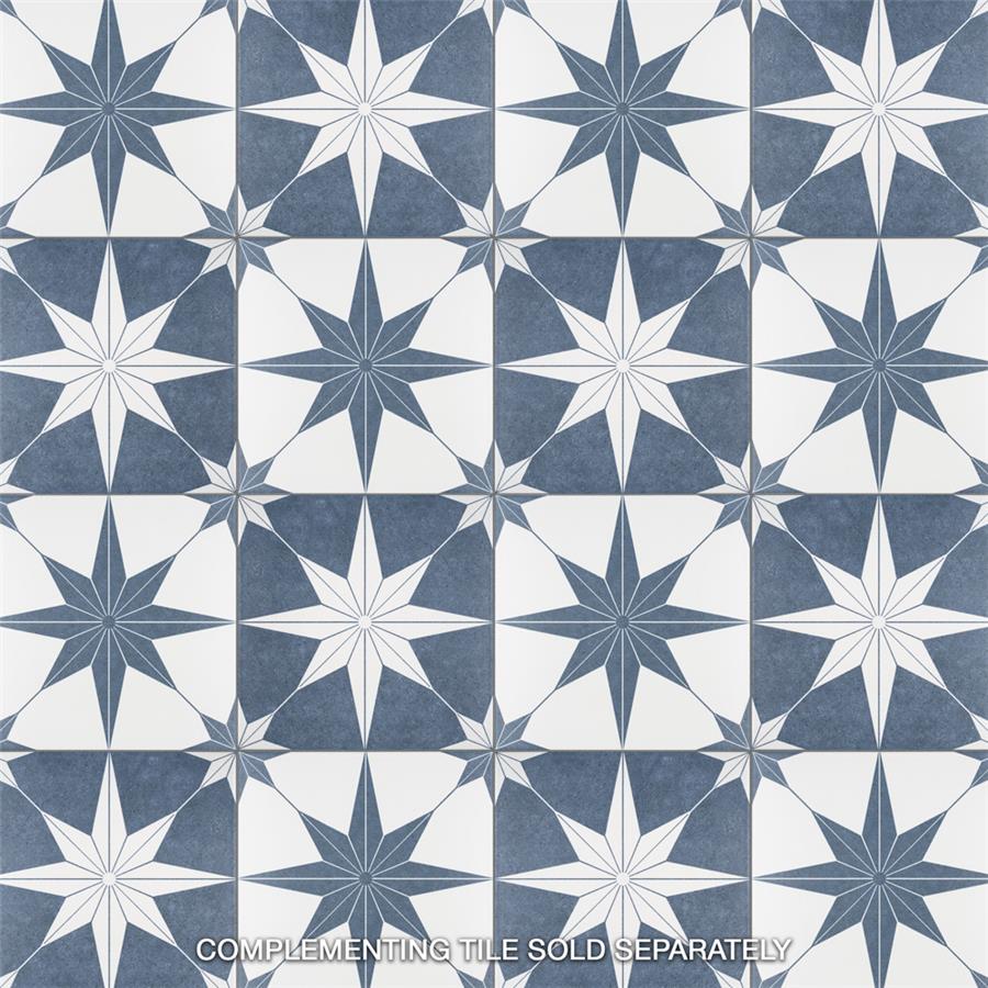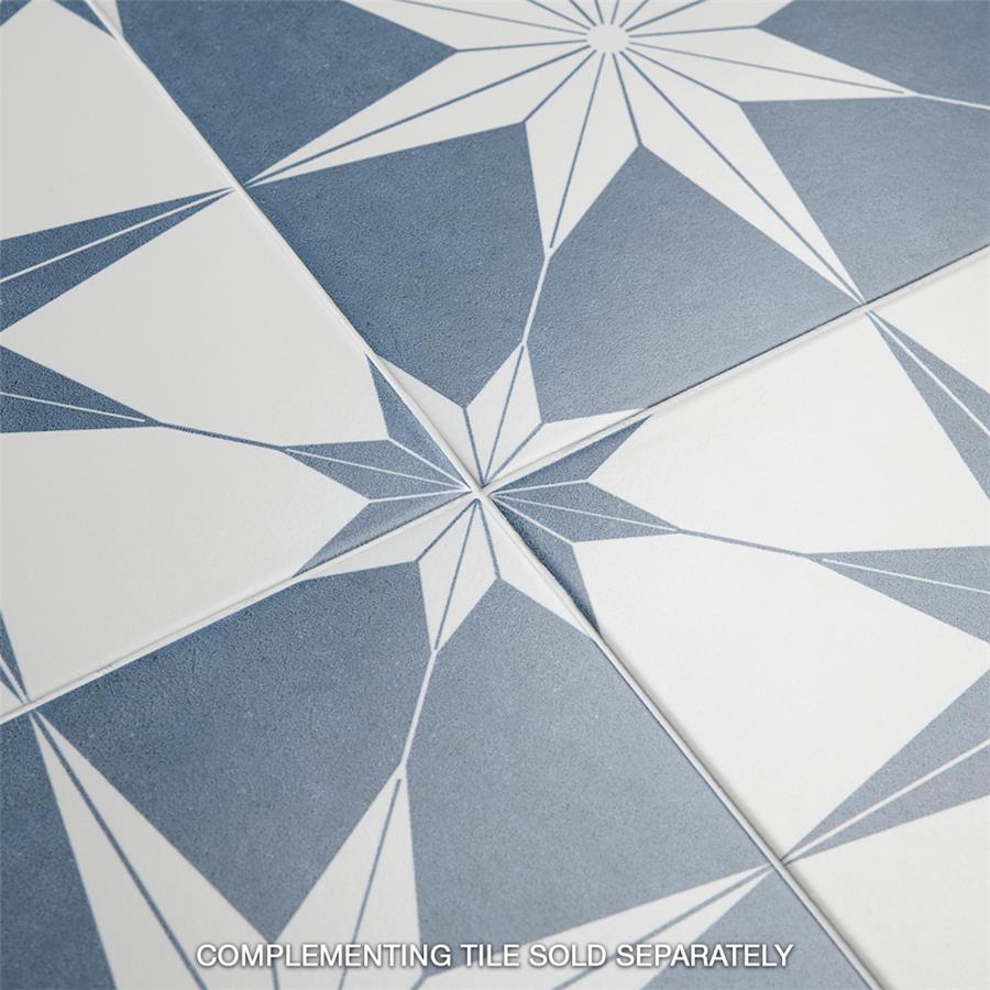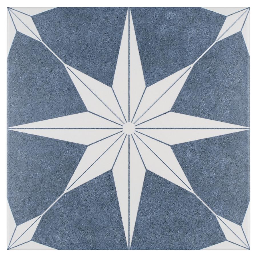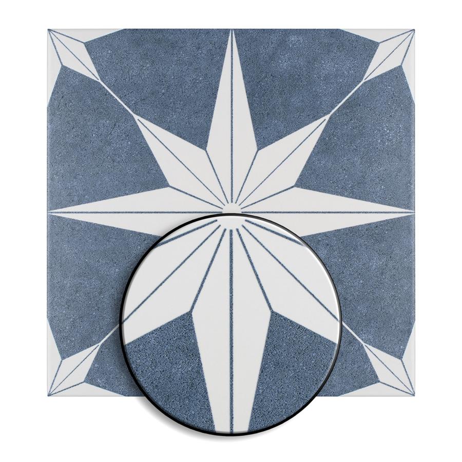 The SomerTile Stella Day 9-3/4 in. x 9-3/4 in. Porcelain Floor and Wall Tile offers a modern twist to classic old-world European elegance. In bluish-grey and chalky white tones, this unique patterned tile features a star constructed of geometric shapes at its center. The medium-sheen glazed surface offers a sleek look that adds extra character to this unique artistic tile. Its impervious and frost resistant features make this an ideal tile for both indoor and outdoor use, including backsplashes, bathrooms, kitchens and patios.Tile is the better choice for your space. This tile is made from natural ingredients, making it a healthy choice as it is free from allergens, VOCs, formaldehyde and PVC.