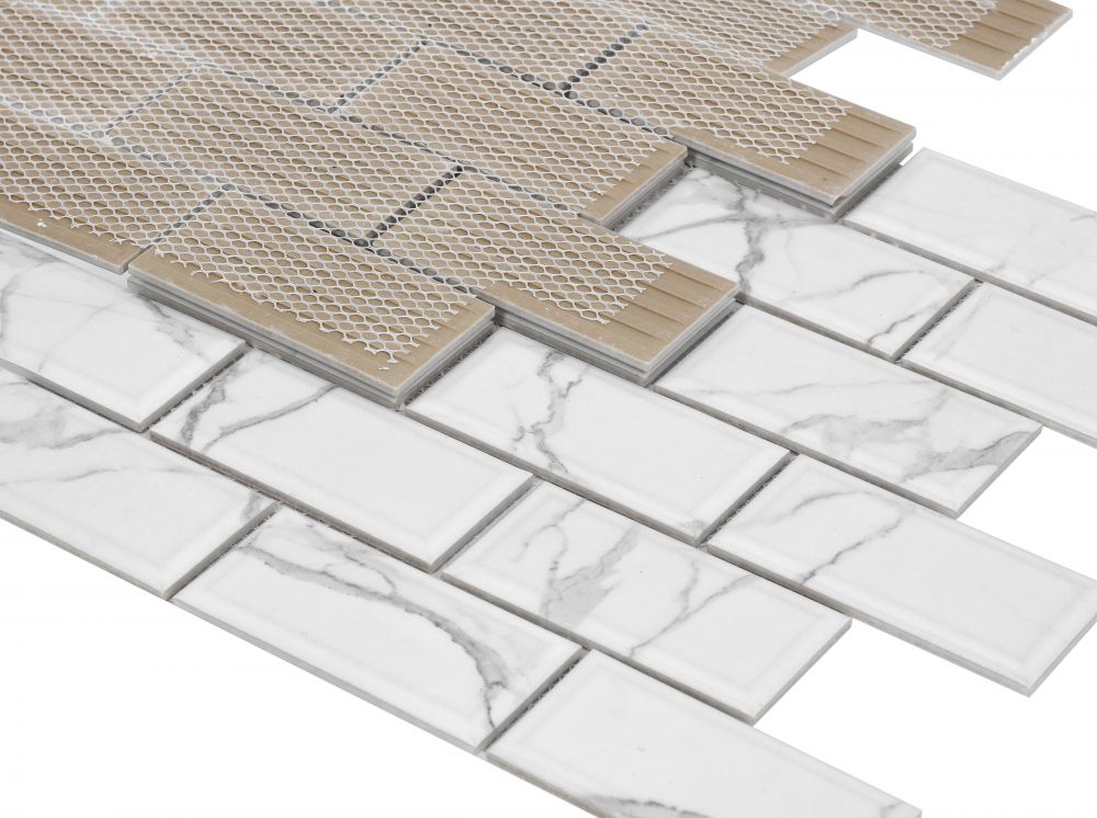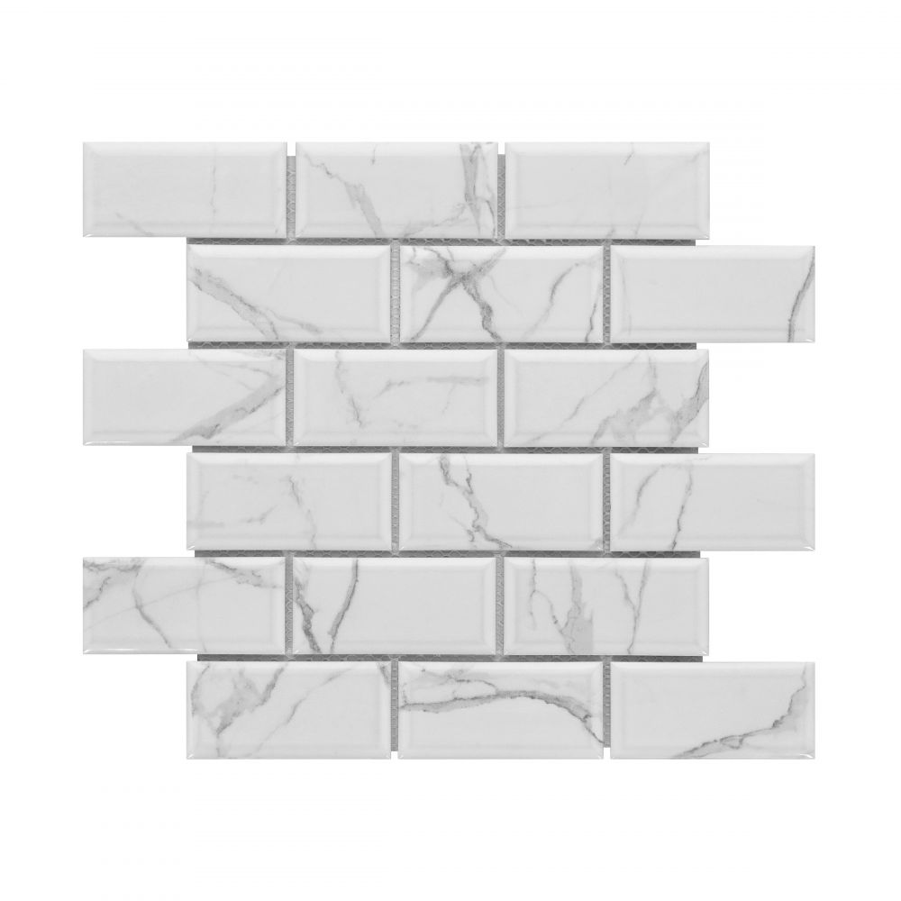 Product Sold By The SheetPool Rated for use in Swimming PoolsHulu Collection: Subway Statuario Glossy 11.5×11.5 – Porcelain mosaic in subway pattern.Suggested Grout Color: Bostik Trucolor White H152WARNING: This product can expose you to chemicals including crystalline silica (airborne particles of respirable size) in dust created during fabrication/installation if the product is dry cut/ground or pulverized, which are known to the State of California to cause cancer. For more information, go to https://www.p65warnings.ca.gov/.