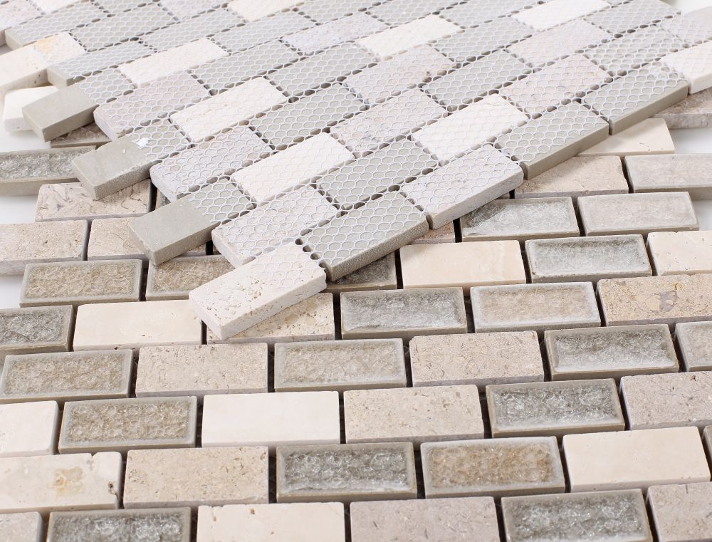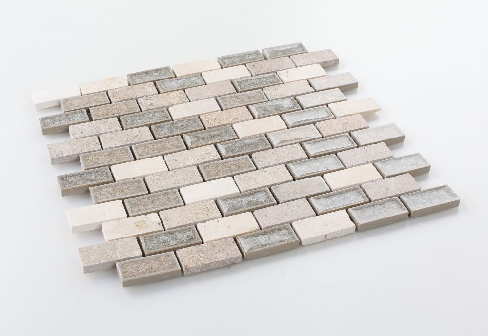 Product Sold By The SheetSwiss Brick- 1×2″ multi-color crackled glass & lime stone mosaic. Need to seal the tile for the residential shower wall installation.Suggested Grout Color: Bostik Dimension Opal H610WARNING: This product can expose you to chemicals including crystalline silica (airborne particles of respirable size) in dust created during fabrication/installation if the product is dry cut/ground or pulverized, which are known to the State of California to cause cancer. For more information, go to https://www.p65warnings.ca.gov/.