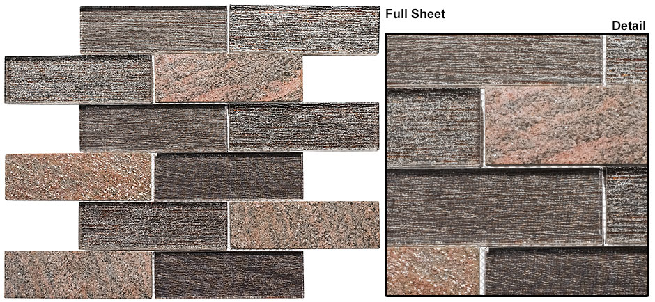 Tile Size: 2” x 6”Sheet Size: 11.75” x 11.62”Sheet Coverage: .95 SQFRows Per Sheet: 6Tiles Per Sheet: 12Cut Into Borders: Every RowTile Thickness: 5/16” (8 mm)Grout Joints: 1/16” (2 mm)All tiles are mesh mounted.Due to the variance in installation methods, grout colors, lighting, image variances and computer monitor settings; the images above may not accurately represent the true color of the products after installation.Therefore Glazzio Tiles always recommends that tiles not be purchased from an image of any kind.