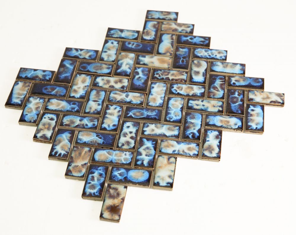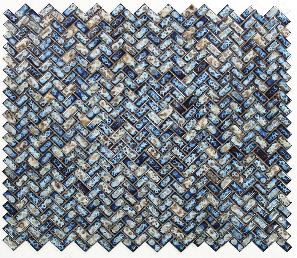 Product Sold By The SheetPool Rated for use in Swimming PoolsHulu Series: Tango Ocean 9.5 x 11 – Handmade, multi-blue flower painted porcelain mosaic in small 1×2 herringbone pattern.Suggested Grout Color: Bostik Trucolor Classic Bone H158WARNING: This product can expose you to chemicals including crystalline silica (airborne particles of respirable size) in dust created during fabrication/installation if the product is dry cut/ground or pulverized, which are known to the State of California to cause cancer. For more information, go to https://www.p65warnings.ca.gov/.