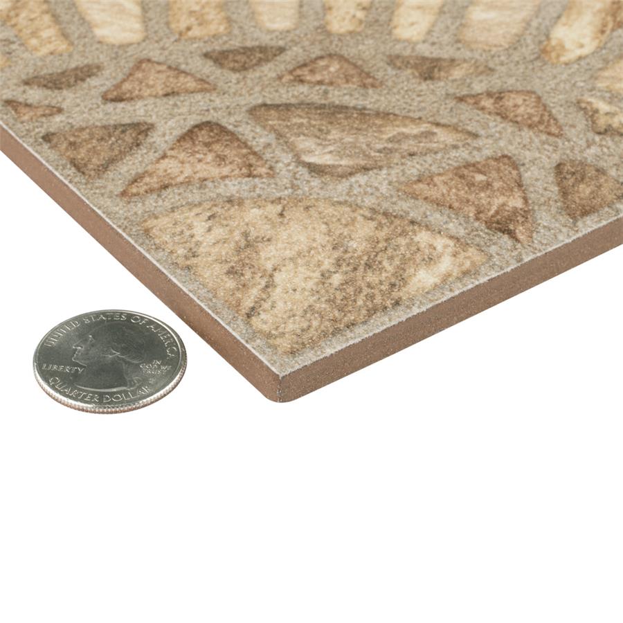 The SomerTile Terra Beige 17-3/4 in. x 17-3/4 in. Ceramic Floor and Wall Tile features a textured, low sheen finish. This tile captures the look of intricate, individually placed stones on an easy to install ceramic slab. Taupe faux grout lines help to accentuate these ochre, sepia, terra cotta, tan and taupe individual stones. This highly durable non-vitreous tile can be used in high-traffic residential and commercial interior spaces. Tile is the better choice for your space. This tile is made from natural ingredients, making it a healthy choice as it is free from allergens, VOCs, formaldehyde and PVC.