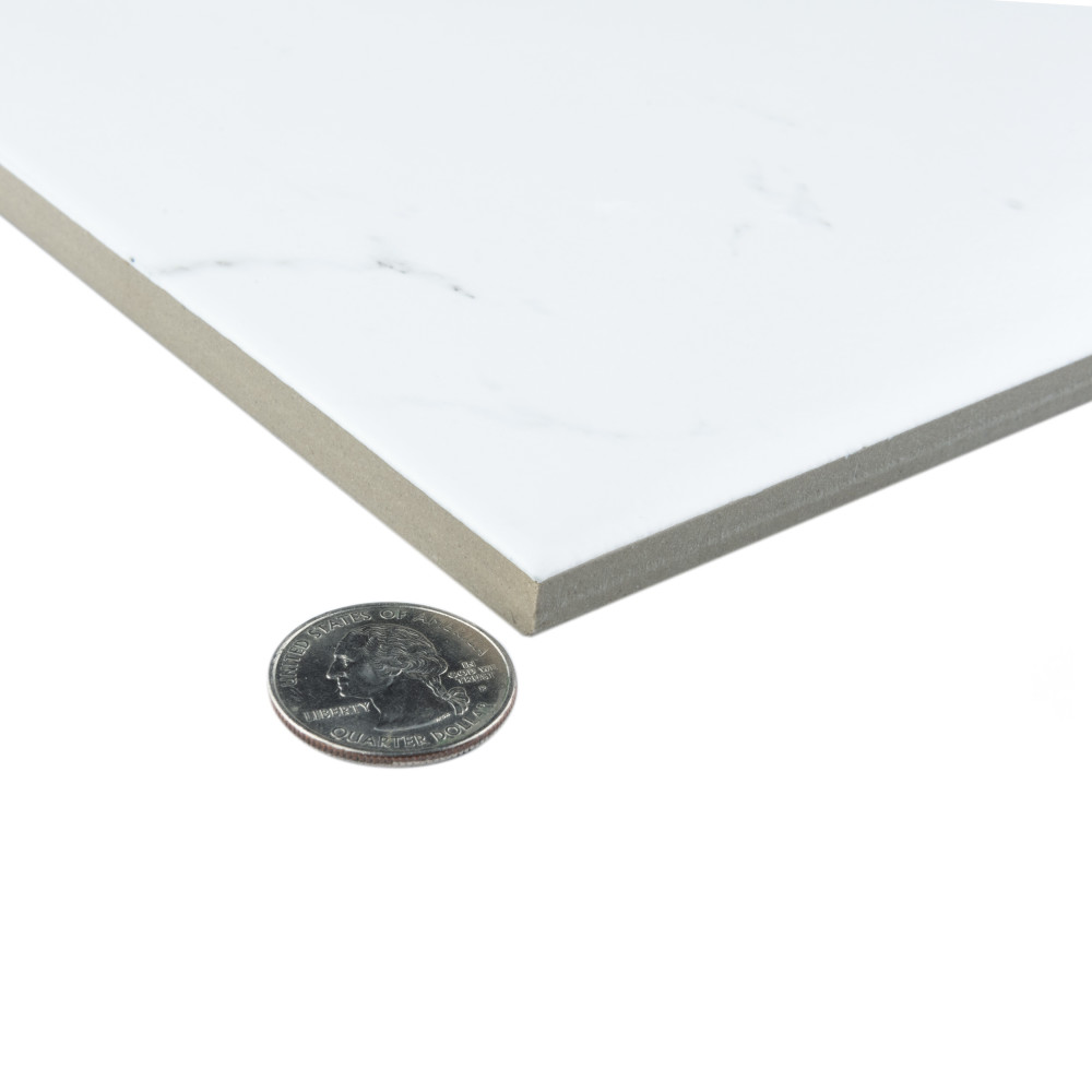 Capturing the appearance of a marble look, our Timeless Calacatta Porcelain Floor and Wall Tile features a , matte finish, making it a great choice for your space. With its impervious, frost-resistant features, this white square tile is an ideal selection for both indoor and outdoor commercial and residential installations, including kitchens, bathrooms, backsplashes, showers, hallways, entryways, patios and fireplace facades. This tile is a perfect choice on its own or paired with other products in the Timeless Collection. Tile is the better choice for your space!