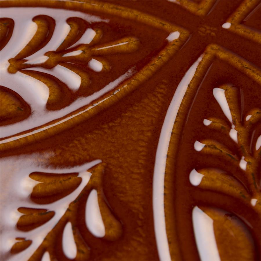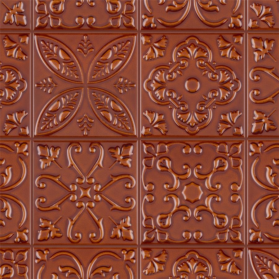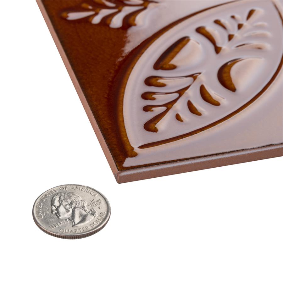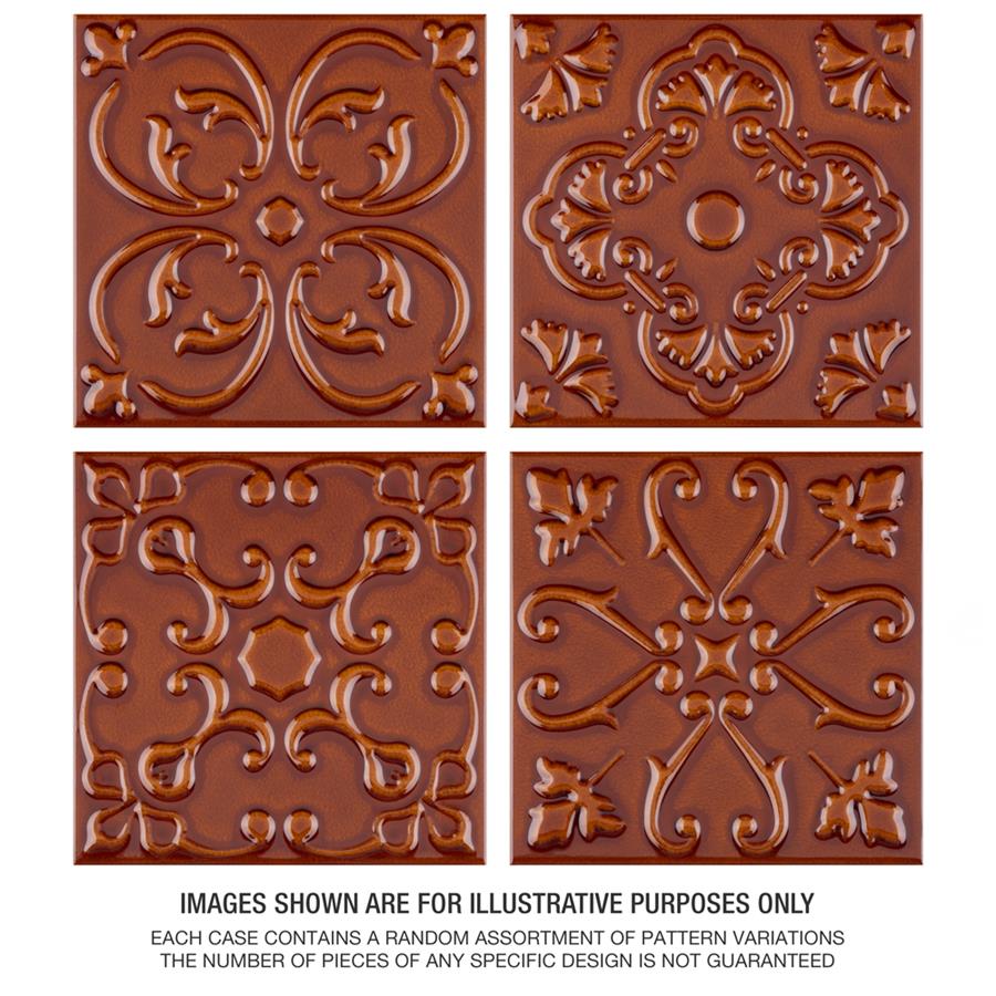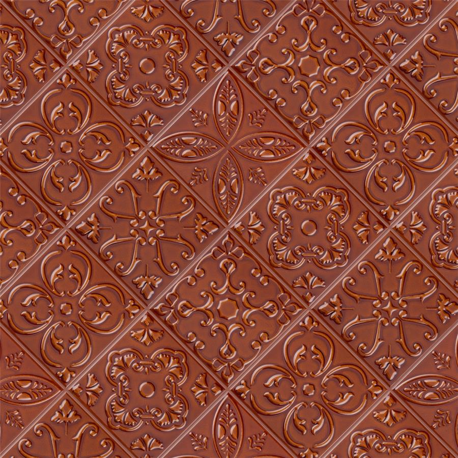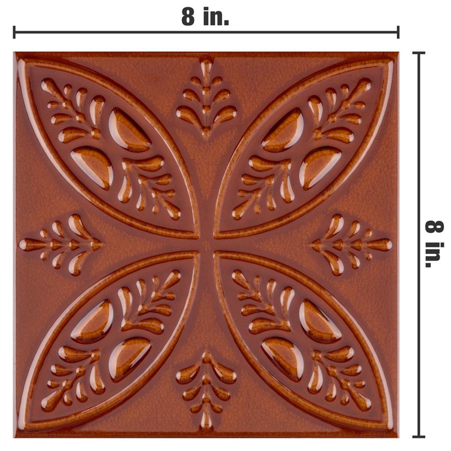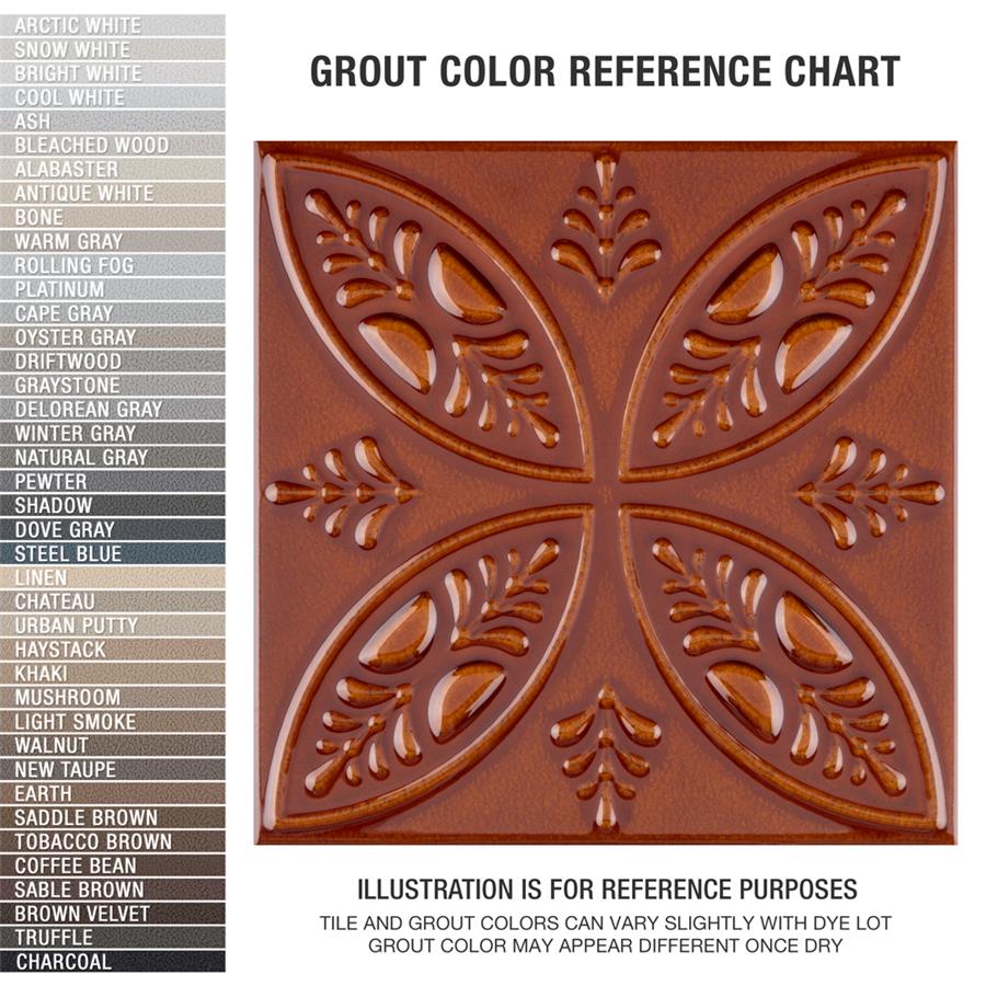 Reminiscent of antique tin ceiling tiles, our Trend Ambar 8” x 8” Ceramic Wall Tile offers authentic vintage appeal. This decorative square tile features embossed old-world floral motifs in a glossy dark amber, red tone. Its highly reflective glossy finish and smooth surface adds timeless appeal and sophisticated depth to any space. This stylish design is visually appealing and versatile, blending beautifully with a range of looks from vintage industrial to modern day. Its glazed feature makes it an ideal choice for indoor wall installations including kitchen backsplashes, bathroom showers, and fireplace facades. his tile is a perfect choice on its own or coordinated with other products in the Trend series. Tile is the better choice for your space. Tile is the better choice for your space. This tile is made from natural ingredients, making it a healthy choice as it is free from allergens, VOCs, formaldehyde, and PVC.Try out our grout test below to determine which grout color suits your design preferences.