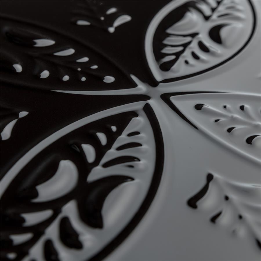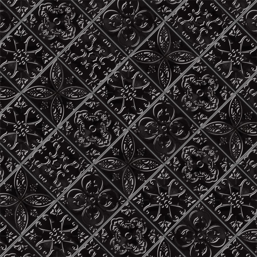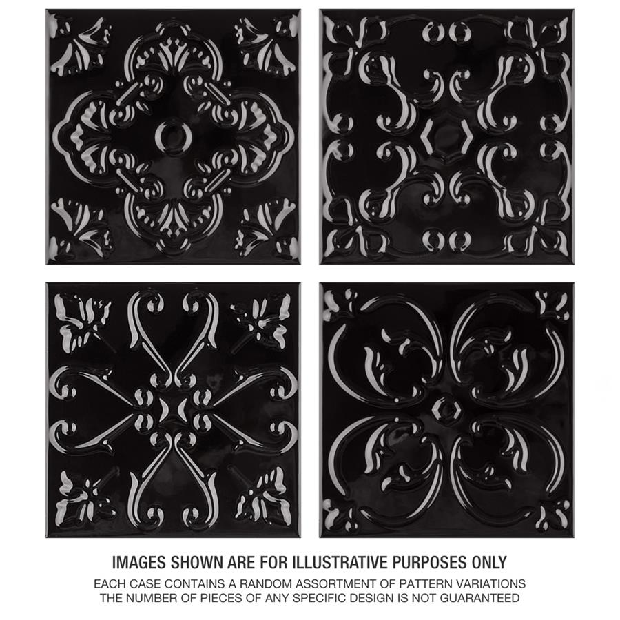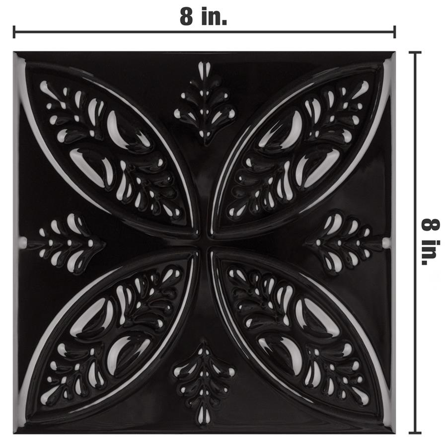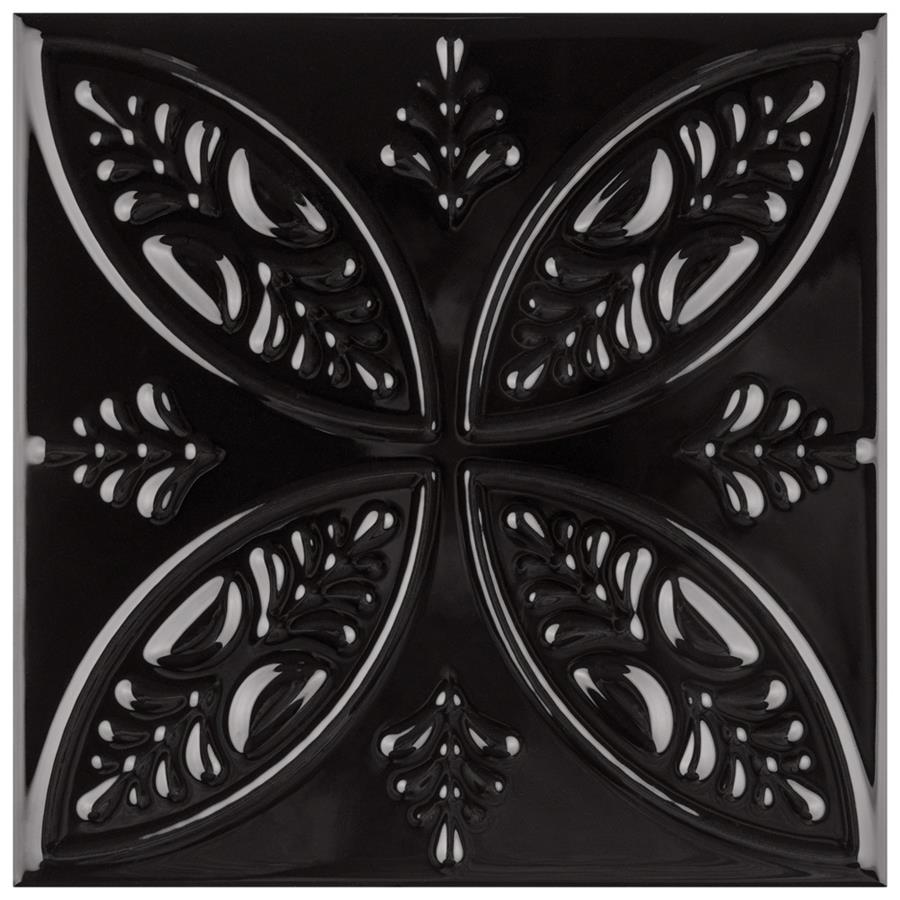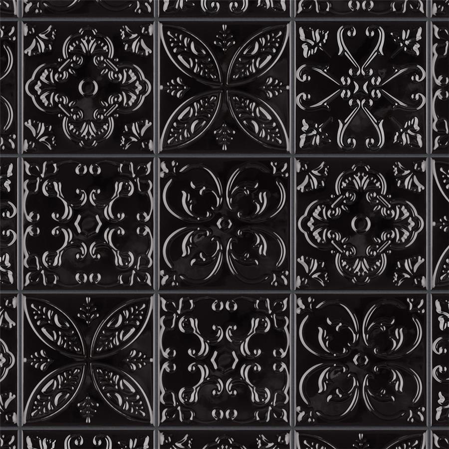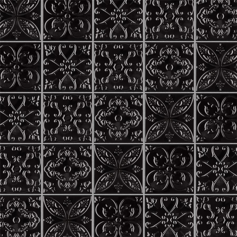 Reminiscent of antique tin ceiling tiles, our Trend Black 8” x 8” Ceramic Wall Tile offers authentic vintage appeal. This decorative square tile features embossed old-world floral motifs in a glossy black tone. Its highly reflective glossy finish and smooth surface adds timeless appeal and sophisticated depth to any space. This stylish design is visually appealing and versatile, blending beautifully with a range of looks from vintage industrial to modern day. Its glazed feature makes it an ideal choice for indoor wall installations including kitchen backsplashes, bathroom showers, and fireplace facades. his tile is a perfect choice on its own or coordinated with other products in the Trend series. Tile is the better choice for your space. Tile is the better choice for your space. This tile is made from natural ingredients, making it a healthy choice as it is free from allergens, VOCs, formaldehyde, and PVC.Try out our grout test below to determine which grout color suits your design preferences.