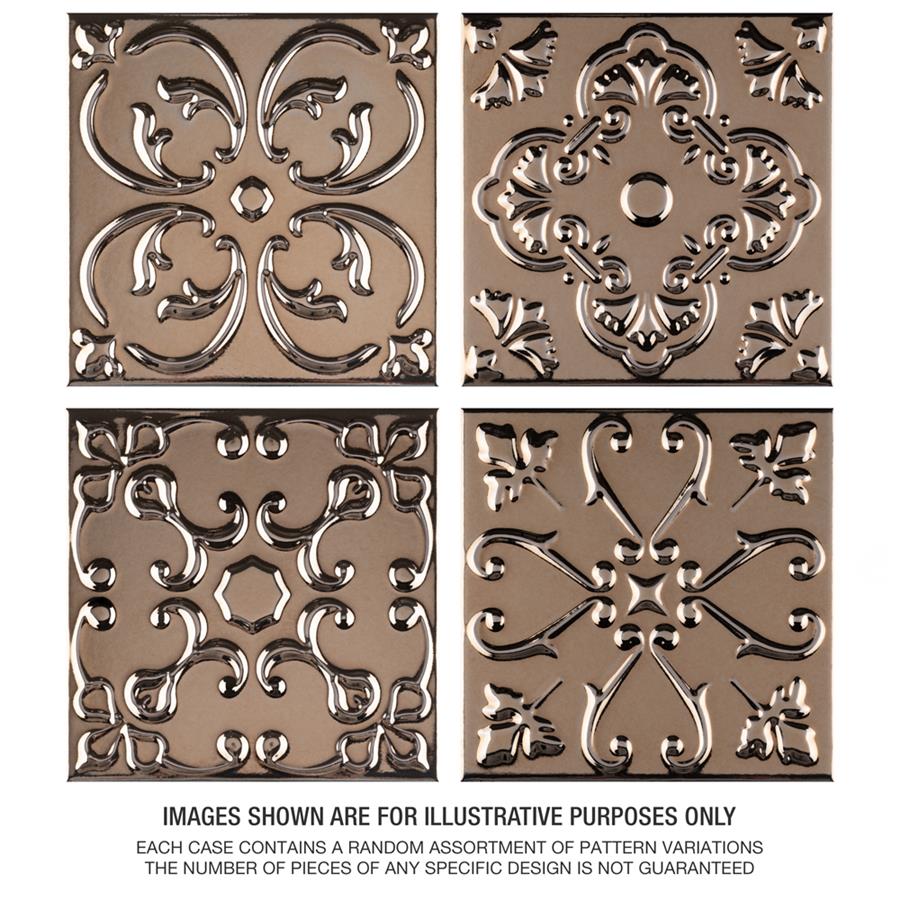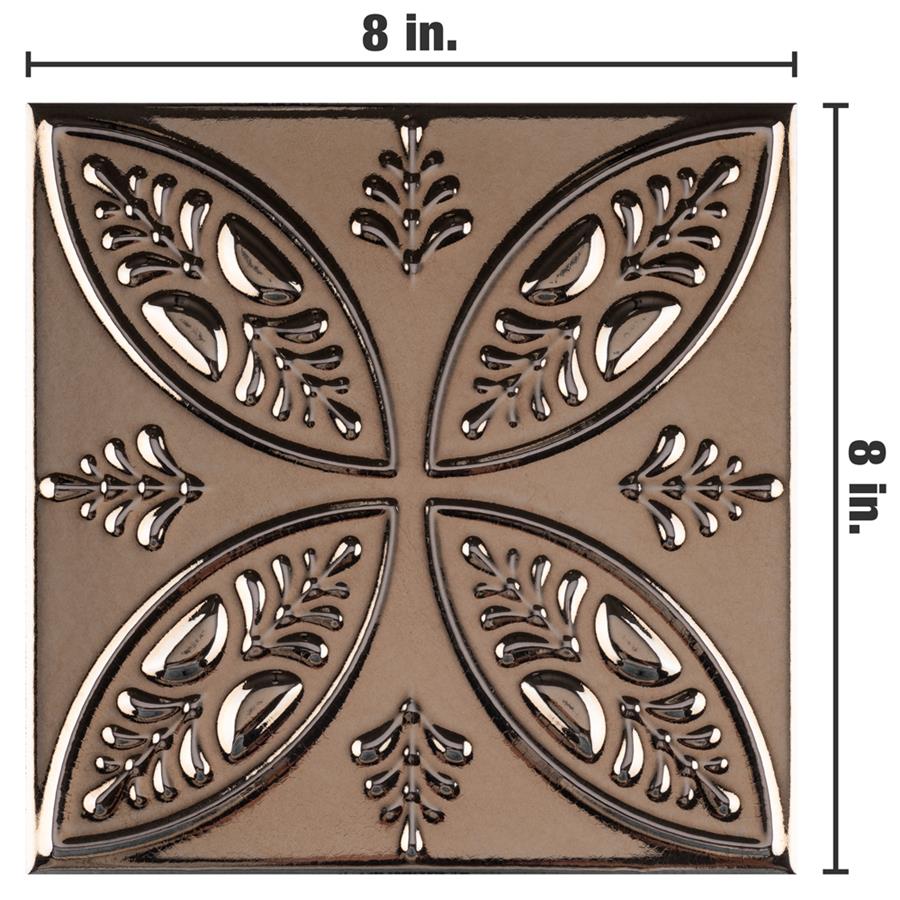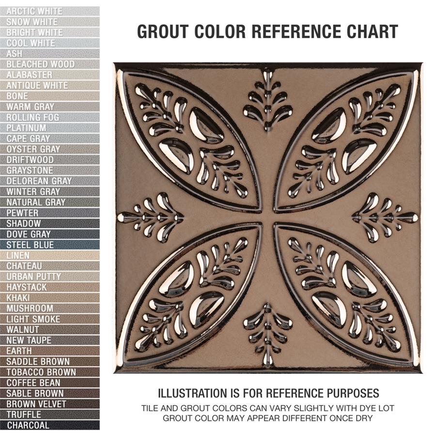 Reminiscent of antique tin ceiling tiles, our Trend Titanium 8” x 8” Ceramic Wall Tile offers authentic vintage appeal. This decorative square tile features embossed old-world floral motifs in a glossy titanium tone. Its highly reflective glossy finish and smooth surface adds timeless appeal and sophisticated depth to any space. This stylish design is visually appealing and versatile, blending beautifully with a range of looks from vintage industrial to modern day. Its glazed feature makes it an ideal choice for indoor wall installations including kitchen backsplashes, bathroom showers, and fireplace facades. his tile is a perfect choice on its own or coordinated with other products in the Trend series. Tile is the better choice for your space. Tile is the better choice for your space. This tile is made from natural ingredients, making it a healthy choice as it is free from allergens, VOCs, formaldehyde, and PVC.Try out our grout test below to determine which grout color suits your design preferences.