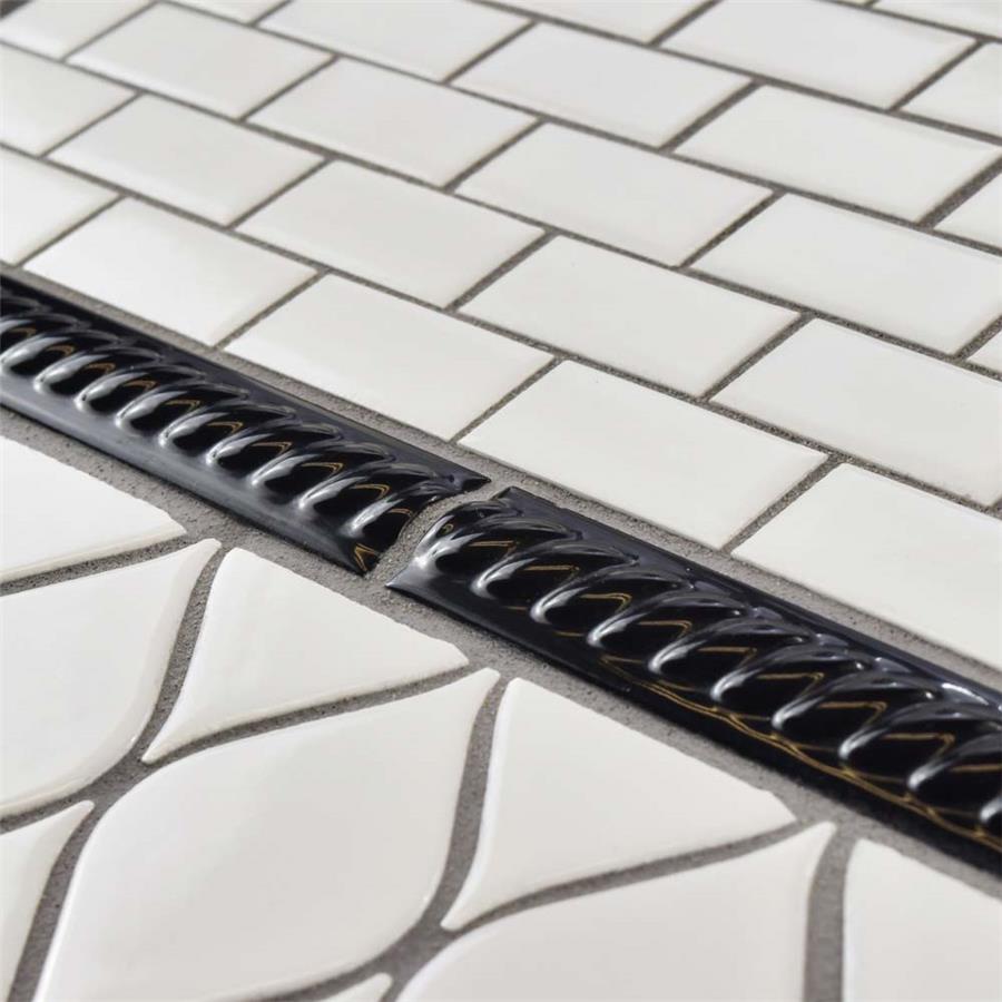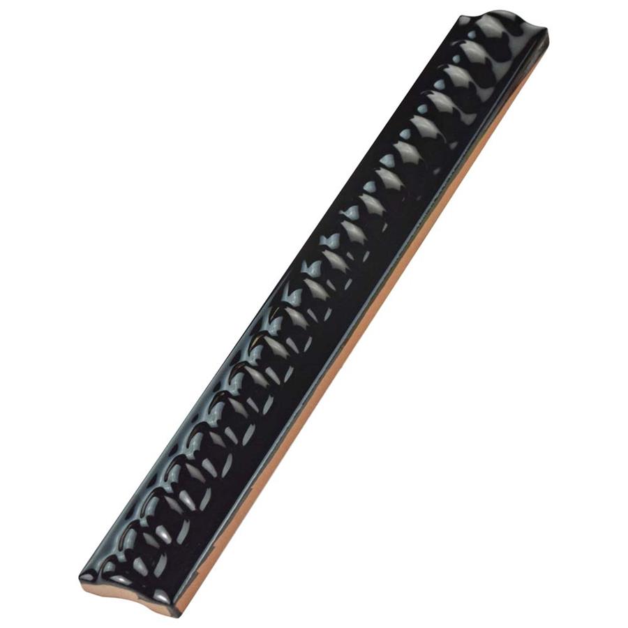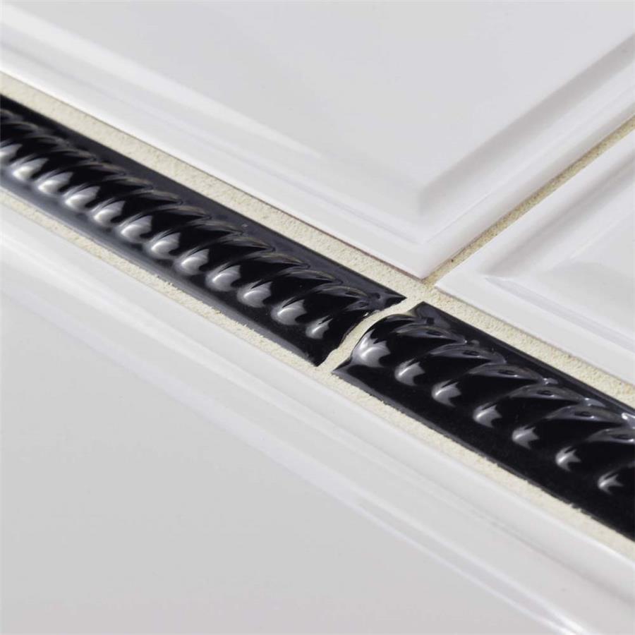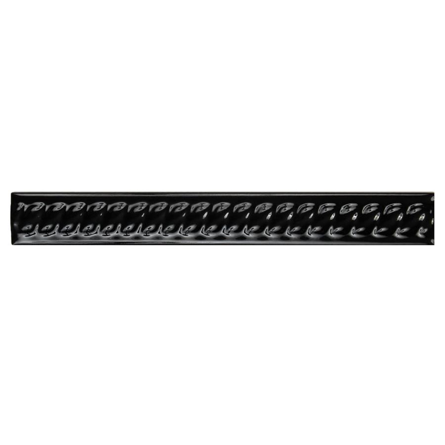 The SomerTile Trenza Nero Moldura 1 in. x 7-7/8 in. Ceramic Rope Pencil Wall Trim Tile features a high-gloss glaze and an engraved rope pattern that create a stylish complement for your space. This easy-to-clean tile is constructed from durable, chemical-resistant ceramic material. This tile is suitable for installations on indoor walls and is a great choice for use as a stand-alone border or as an accent piece.Tile is the better choice for your space. This tile is made from natural ingredients, making it a healthy choice as it is free from allergens, VOCs, formaldehyde and PVC.