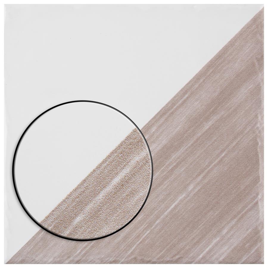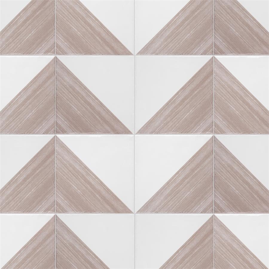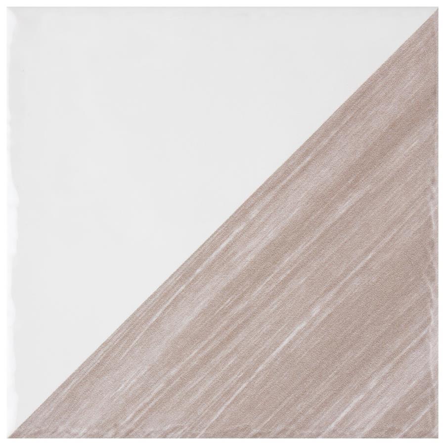 Geometry and simplicity blend together to create our Triangle Rustique Glossy Taupe 6 in. x 6 in. Ceramic Wall Tile. This square tile is a subtle statement piece created by alternating soft taupe and white watercolor inspired tones that draw the eye and create a unique visual experience. With slight undulation and a smooth glossy finish, this ceramic tile offers a handmade appearance through subtle imperfections that make it look like each tile was handcrafted. This trendsetting display of geometric pattern is visually appealing and versatile, and can be laid out in various different patterns to create a one-of-a-kind installation. Intended for interior wall use, it is an ideal choice for kitchen backsplashes, bathroom showers and fireplace facades. It is great as a cohesive look or paired with other products in the Triangle Rustique Collection. Tile is the better choice for your space. This tile is made from natural ingredients, making it a healthy choice as it is free from allergens, VOCs, formaldehyde and PVC.