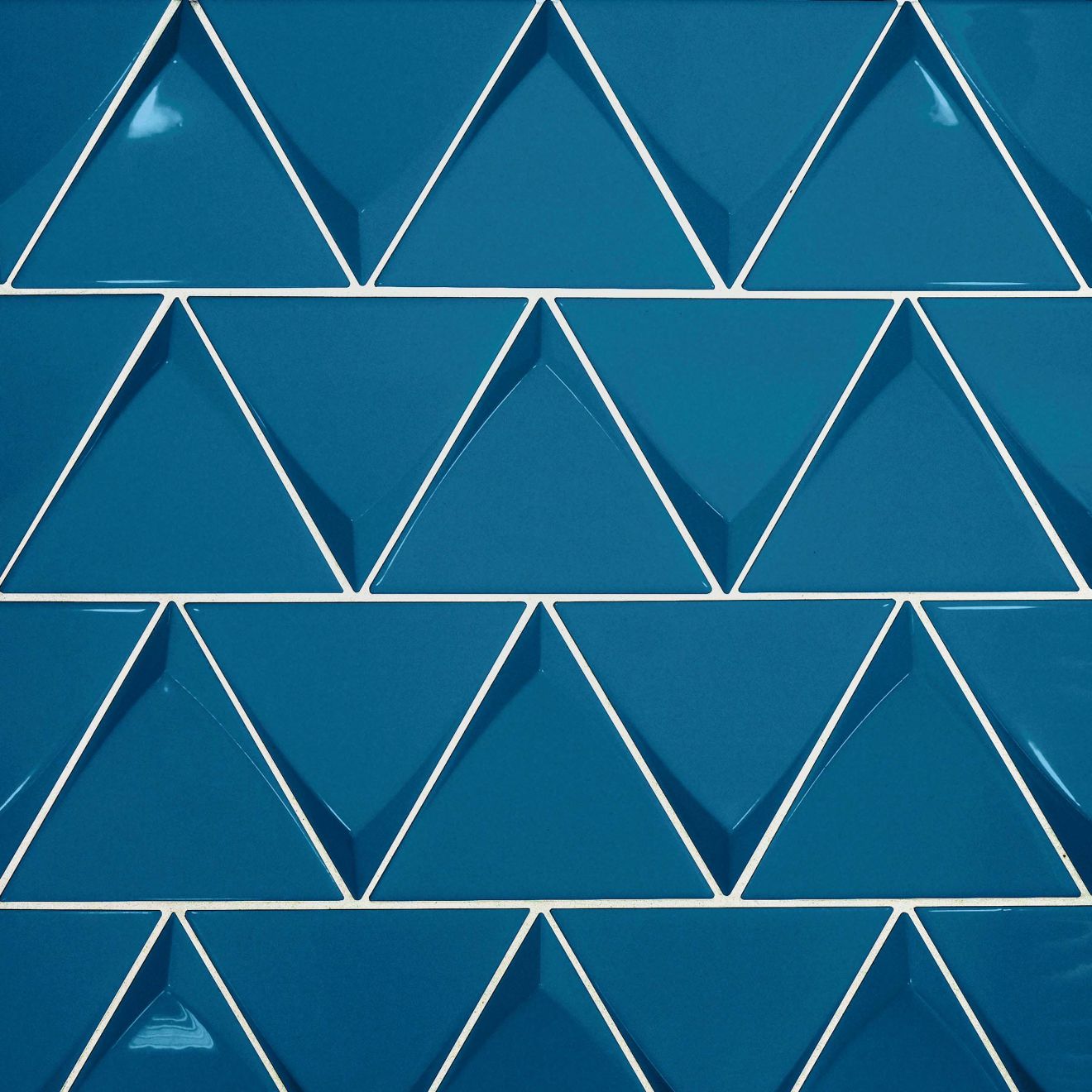 An innovative 3D triangle ceramic wall tile, the Triangolo Collection, plays with light and shadow to give your walls visual depth and dimension. The 4.5”x5” Triangolo, offered in six bold colors presents numerous options to add bold and subtle geometric relief to your walls. This series comes in glossy, matte and metallic finishes. Mix and match the colors, finishes and patterns to create unique wallscapes.Images and product samples are representative of a product’s potential characteristics. There is no guarantee that the sample product or images will 100% match the product received. Field and trim tile may not be an exact match. We reserve the right to make changes to product specifications at any time without notice. Tiles are subject to variations in color, shade, sizing, surface texture and finish. Prior to installation, installer must blend tiles from several different boxes to achieve an even distribution of color range. Installer must conduct a dry mock layout under proper lighting conditions prior to installation. It is the consumer’s responsibility to inspect the product prior to installation to ensure satisfaction. Once installed, the product is deemed accepted. Reference the most current TCNA Handbook, ANSI, manufacturer’s specifications, and the Bedrosians® Care & Maintenance guide for installation, outdoor use, care and maintenance information. Improper installation, application, and/or use voids warranty. Please visit www.bedrosians.com for current product information.POLISHED/HONED CERAMIC & PORCELAINFor installation of all polished ceramic/porcelain, polished glazed ceramic/porcelain, and all honed ceramic/porcelain tiles, Manufacturer requires use of a grout release or sealer prior to grouting. Manufacturer also requires use of a grout color that matches the predominant color of the tile. Do not use acidic cleaners on polished ceramic/porcelain, polished glazed ceramic/porcelain, or honed ceramic/porcelain tiles.FLOOR APPLICATIONThe maximum allowable installation offset is 33%. Minimum grout joint must be 3/16 inch. Please refer to the most current TCNA Handbook. Manufacturer strongly recommends use of a leveling system during installation. DO NOT INSTALL IN POOLS, SPAS/HOT TUBS, AND/OR SUBMERGED APPLICATIONS UNLESS OTHERWISE INDICATED.