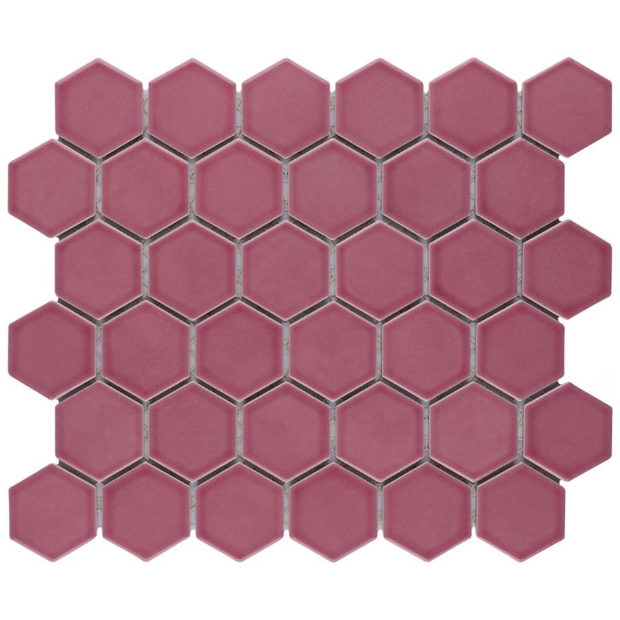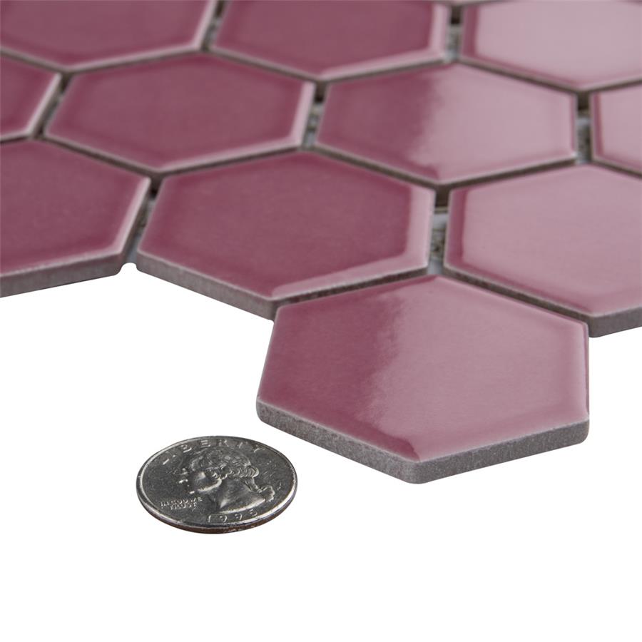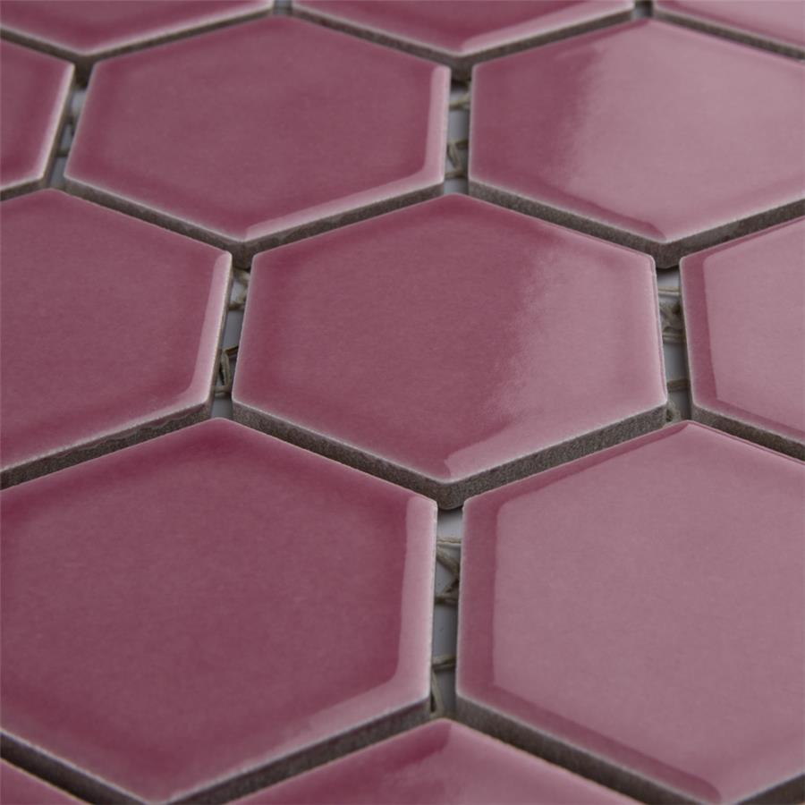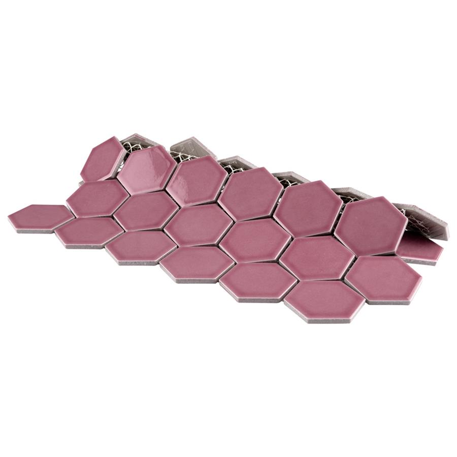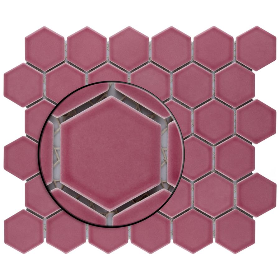 Lending a unique touch of color, our Tribeca 2 in. Hex Glossy Blush 11-1/8 in. x 12-5/8 in. Porcelain Mosaic Floor and Wall Tile instantly elevates spaces through a refreshing dose of vivid geometric design. As an innovative twist on the classic hexagon, this mosaic is comprised of hexagonal chips in blush pink tones with a smooth surface. Glossy hexagons are arranged on an interlocking mesh to create a seamless installation. This minimalistic geometric porcelain mosaic is unique yet simplistic enough to integrate into any design, ranging from traditional style renovations to modern home projects. Its impervious and frost-resistant features make this an ideal tile for both indoor and outdoor residential use, including backsplashes, bathrooms, showers and kitchens. This tile is a perfect choice on its own or paired with other products in the Tribeca Hex Mosaic Collection.Tile is the better choice for your space. This tile is made from natural ingredients, making it a healthy choice as it is free from allergens, VOCs, formaldehyde and PVC.