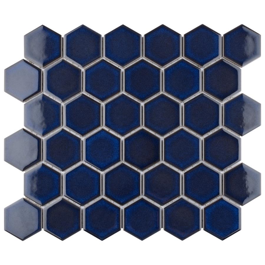 Tribeca Hex 2″ Glossy Cobalt 11-1/8″ x 12-5/8″ Porc Mosaic
