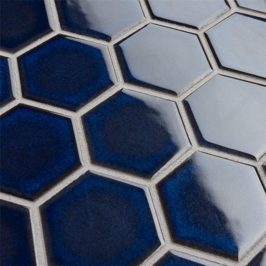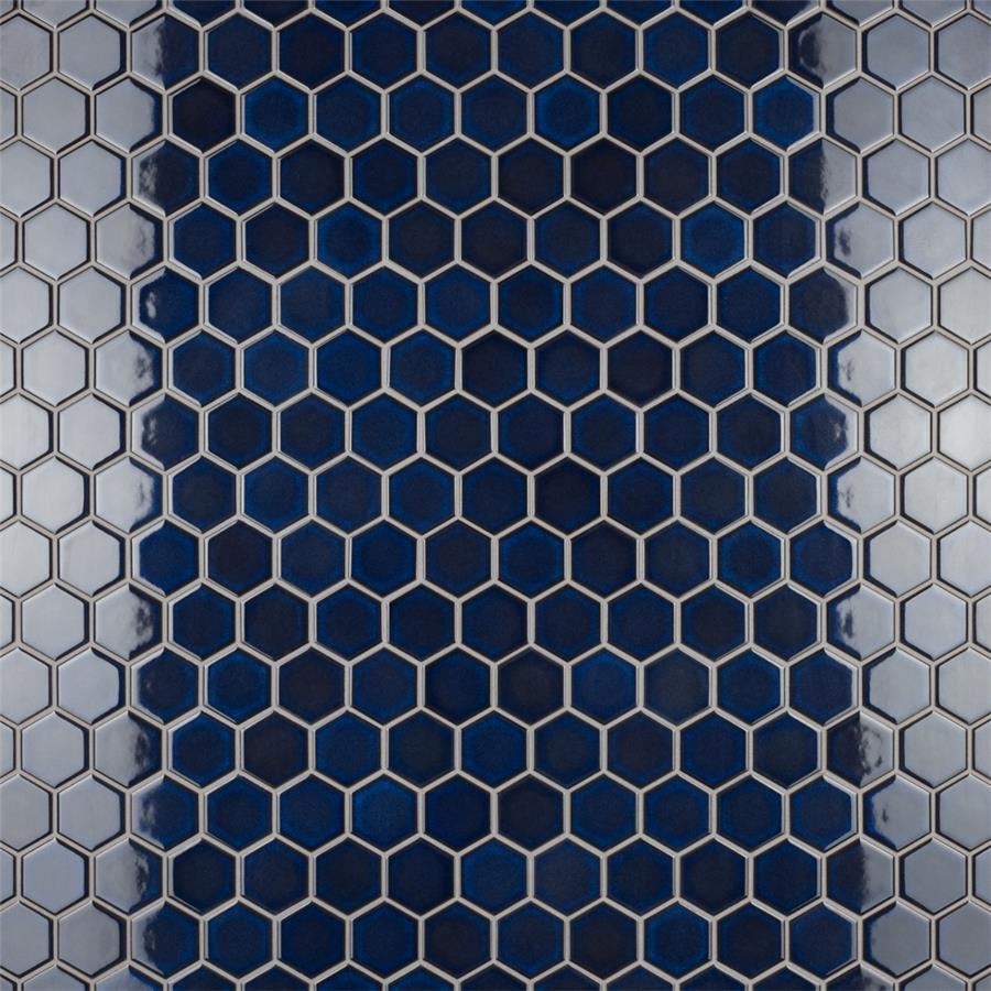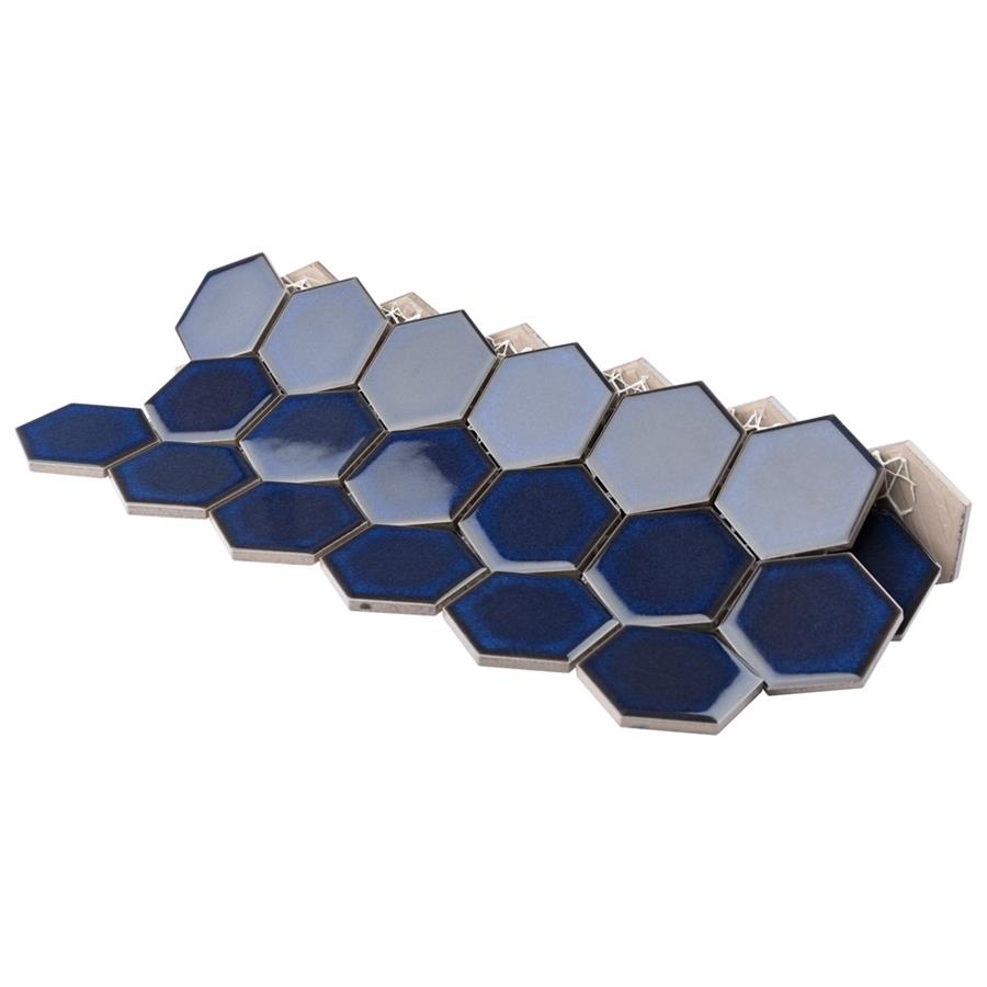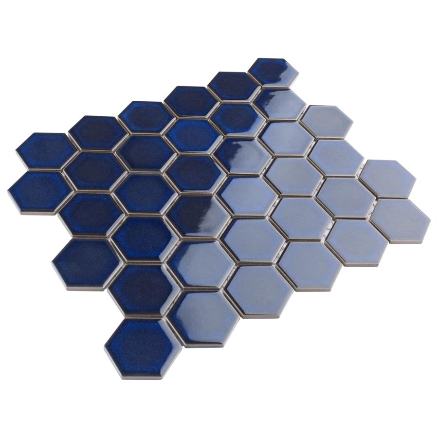 Our Tribeca Hex2″ Glossy Cobalt 12-5/8” x 11-1/8” Porcelain Floor and Wall Mosaic Tile instantly elevates spaces through a refreshing dose of geometric design. With subtle variations in color tone that gradually fade to black around the border, each piece is truly unique. Its rich reactive glaze echoes dark to deep midnight blue hues with a high-gloss finish that is unique yet simplistic enough to integrate into any design, ranging from traditional style renovations to modern home projects. Its impervious and frost-resistant features make this an ideal tile for both indoor and outdoor residential use, including backsplashes, bathrooms, showers and kitchens. This tile is a perfect choice on its own or paired with other products in the Tribeca Hex Mosaic Collection.Tile is the better choice for your space. This tile is made from natural ingredients, making it a healthy choice as it is free from allergens, VOCs, formaldehyde and PVC.