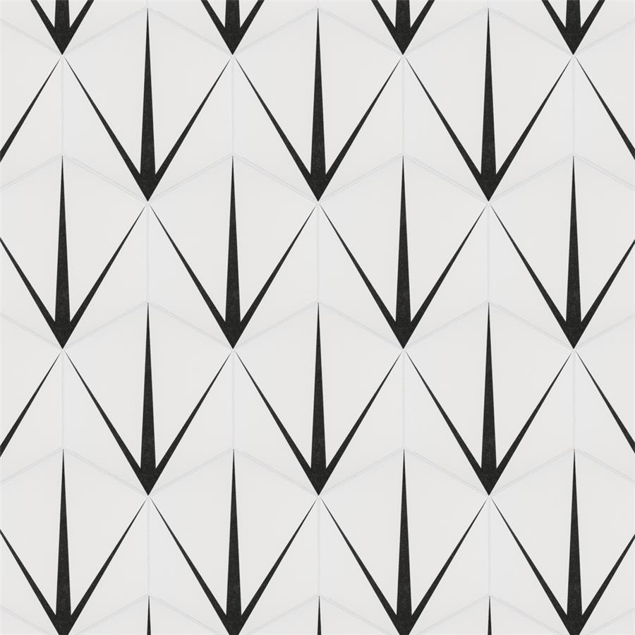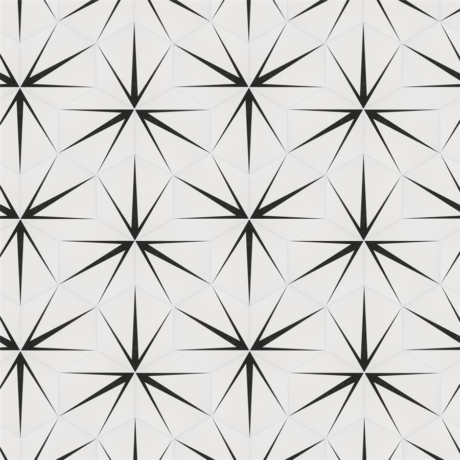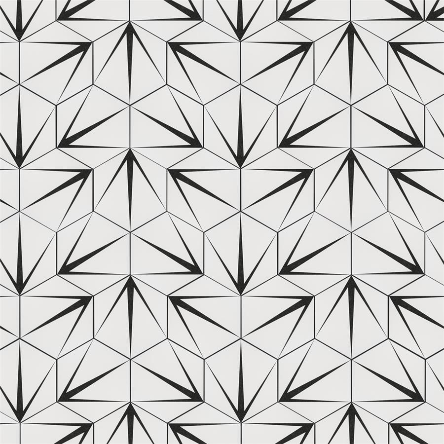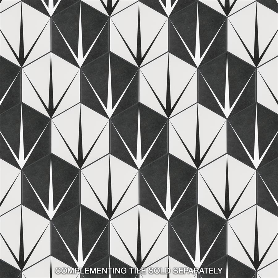 The SomerTile Trident Hex Blanco 8-5/8 in. x 9-7/8 in. Porcelain Floor and Wall Tile features a bright white color tone accented with muted black lines extending across the tile. This mesmerizing tile pattern is sure to liven up your space and give it a modern spin. Its geometric shape is unique yet simplistic enough to integrate into any design, ranging from traditional style renovations to modern home projects. The medium-sheen glazed surface offers a sleek look that adds extra character to this unique artistic tile. Its impervious and frost resistant features make this an ideal tile for both indoor and outdoor use, including backsplashes, bathrooms, kitchens and patios. This tile is a perfect choice on its own or coordinate with other products in the Trident series.Tile is the better choice for your space. This tile is made from natural ingredients, making it a healthy choice as it is free from allergens, VOCs, formaldehyde and PVC.
