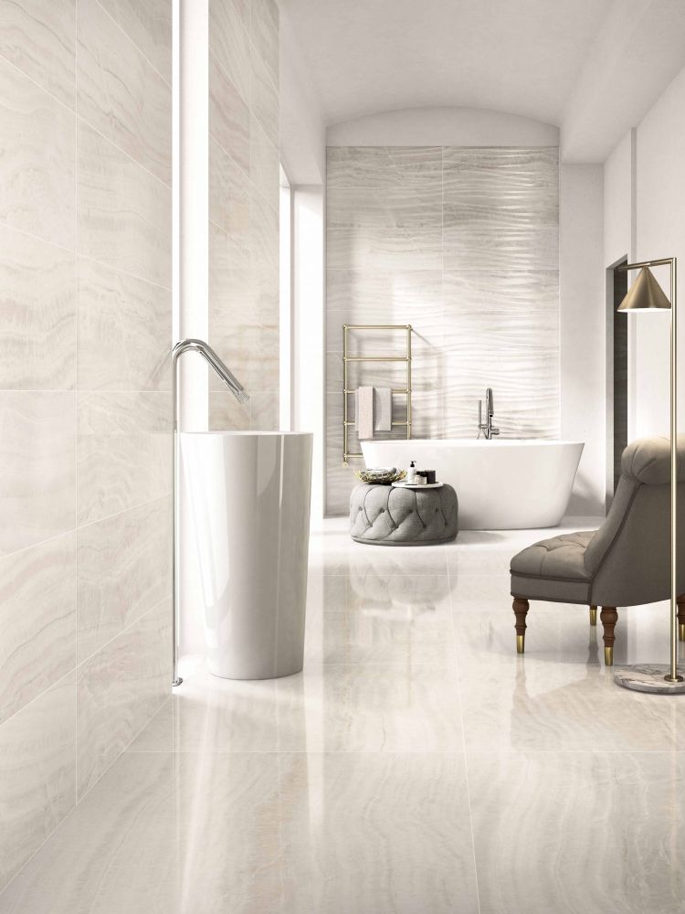 Product Sold By The BoxThis Trilogy Onyx Light 12 x 24 porcelain tile comes in a soft, matte finish.The tile uses inkjet technology, making it possible for more realistic reproductions of other surface materials. This tile has a variation rating of V2, which gives it about 8-10 unique faces.This tile is rectified, meaning it has been precisely cut around the edges in order to be installed with minimal grout lines, which makes for an almost-seamless, clean look.PEI measures a tile’s durability and ability to withstand foot traffic. This is rated on a scale of 1-5, with 5 being the hardest. This tile is rated at 4 PEI, suitable for residential, medium commercial, and light institutional applications.WARNING: This product can expose you to chemicals including crystalline silica (airborne particles of respirable size) in dust created during fabrication/installation if the product is dry cut/ground or pulverized, which are known to the State of California to cause cancer. For more information, go to https://www.p65warnings.ca.gov/.