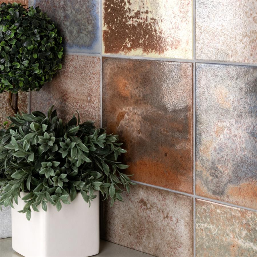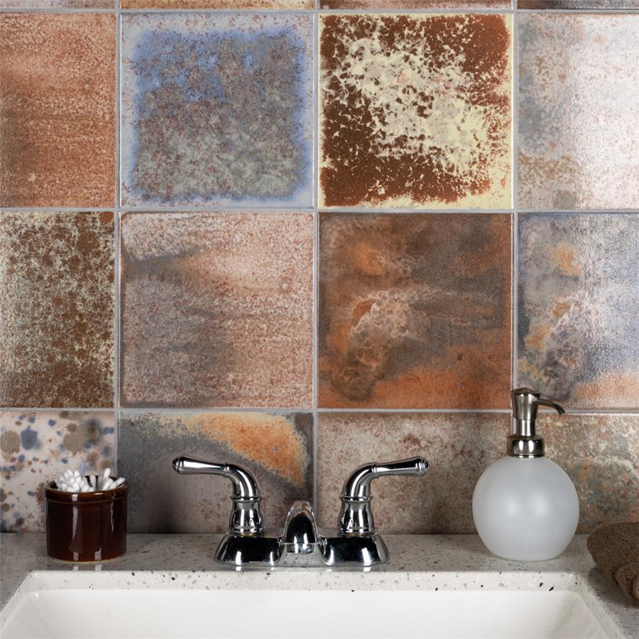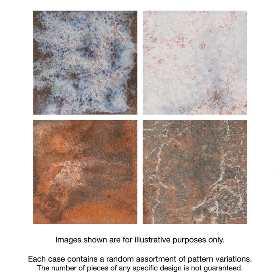 Bring the beauty of science to your living space with the SomerTile True 7-3/4 in. x 7-3/4 in. Ceramic Floor and Wall Tile. This tile recreates the natural art of chemical changes and their reactions, resulting in a variety of colors and random patterns. Featuring colors ranging from blue, pink, orange and everything in between, it is unique in many ways. Being that each piece is so different, you will always have a truly distinctive installation. The glazed, high sheen tile is great for modern or contemporary decors. Use alone or as an accent to many of our other products. It is suitable for indoor and outdoor installations including heavy-duty residential and commercial kitchens.