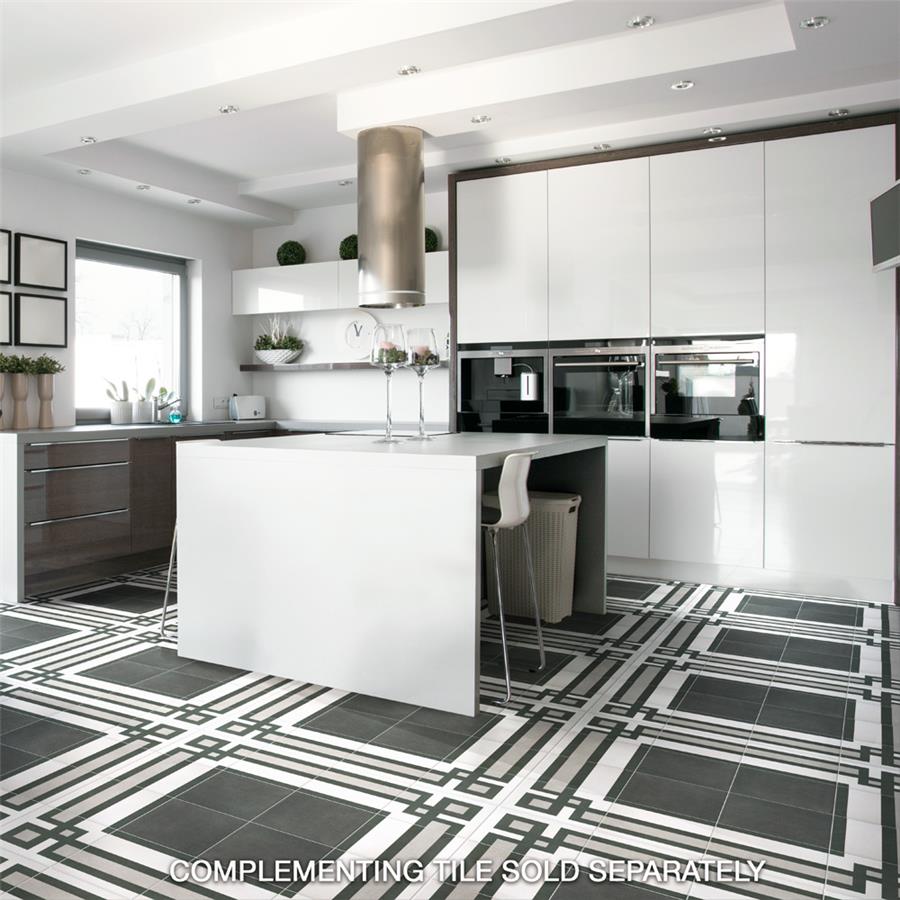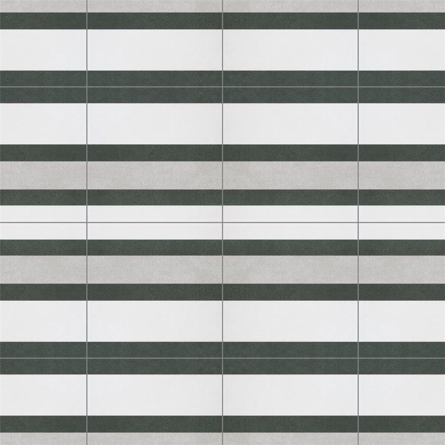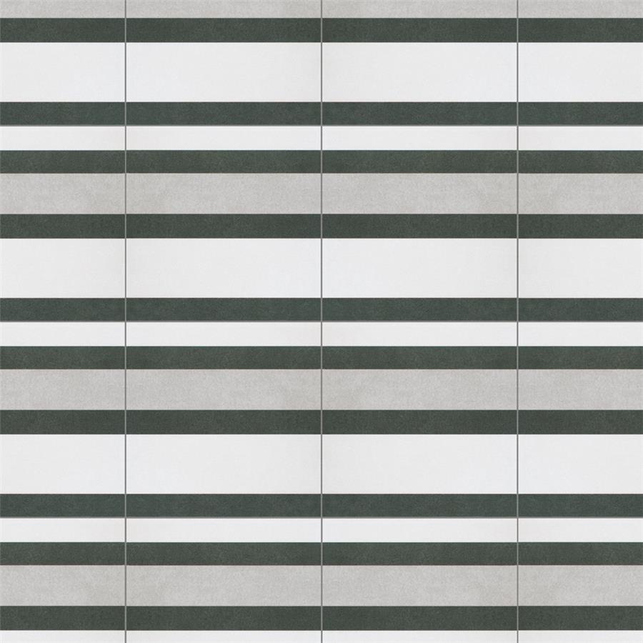 Inspired by artisan cement tiles, our Twenties Frame 7-3/4 in. x 7-3/4 in. Ceramic Floor and Wall Tile captures the look of authentic encaustic tiles with a versatile ceramic body. This square tile features linear patterns in charcoal black and ash grey tones. Set on a snow white base glaze, the contrasting design features a weathered, speckled look, replicating the beauty of Spanish design and offering a unique blend of old-world style and modern appeal. This visually rich floor and wall tile can blend into virtually any design theme, ranging from contemporary projects to traditional installations. Its durable and frost-resistant features make this an ideal choice for indoor and outdoor installations including kitchens, bathrooms, backsplashes, showers, entryways, patios and fireplace facades. It is a perfect choice on its own or paired with other product in the Twenties Collection. Tile is the better choice for your space. This tile is made from natural ingredients, making it a healthy choice as it is free from allergens, VOCs, formaldehyde and PVC.