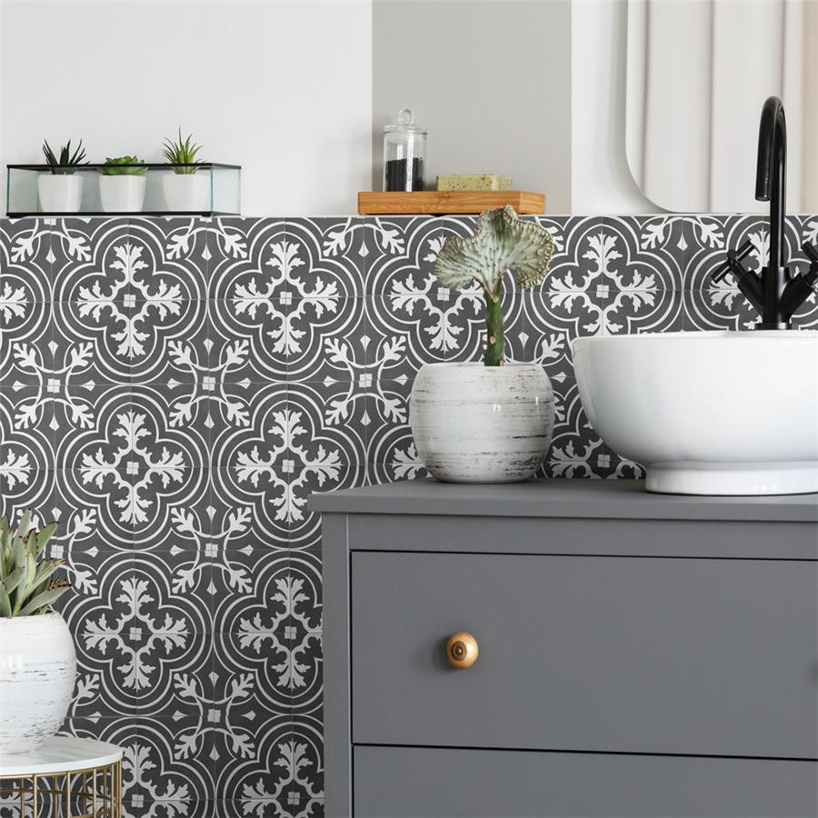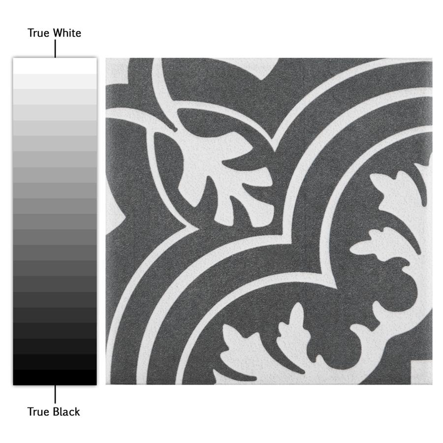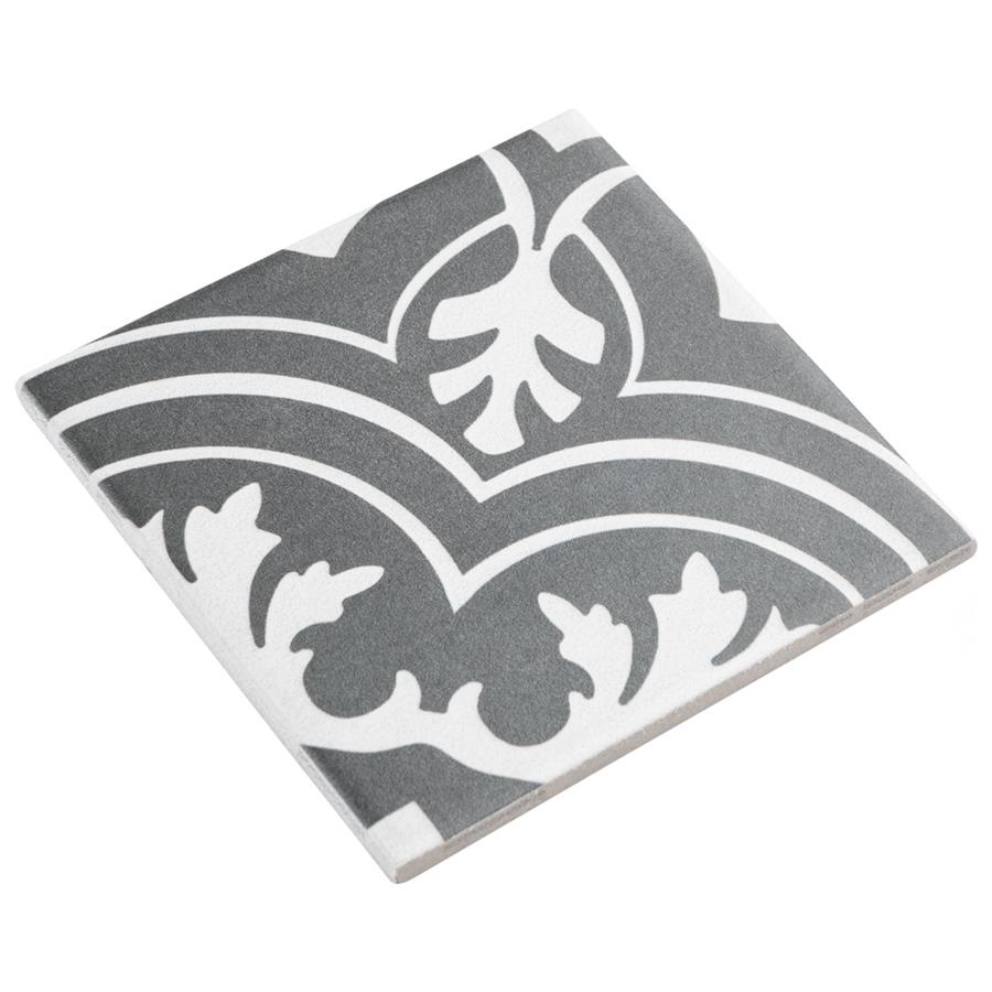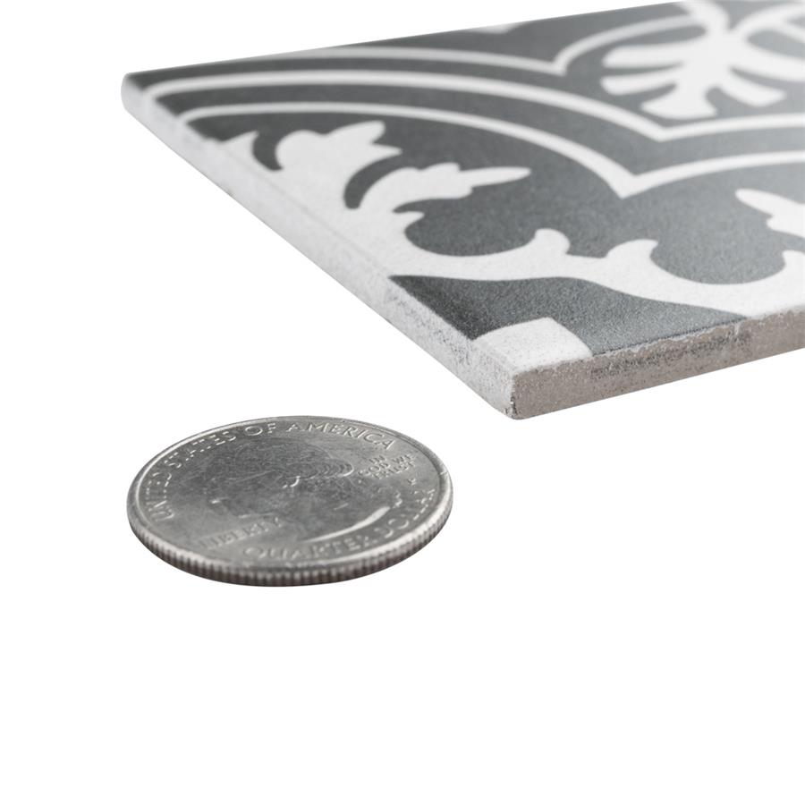 Inspired by artisan cement tiles, our Twenties Mini Classic 4 in. x 4 in. Ceramic Floor and Wall Tile captures the look of authentic encaustic tiles with a versatile ceramic body. Inspired by our Twenties Classic 7-3/4 in. x7-3/4 in. Ceramic Floor and Wall Tile, this smaller version features floral old-world patterns in snow white tones that are accented by simplistic arcs. Set on a charcoal black base glaze, the contrasting design features a weathered, speckled look, replicating the beauty of Spanish design and offering a unique blend of old-world style and modern appeal. This visually rich floor and wall tile can blend into virtually any design theme, ranging from contemporary projects to traditional installations. Its durable and frost-resistant features make this an ideal choice for indoor and outdoor installations including kitchens, bathrooms, backsplashes, showers, entryways, patios and fireplace facades. It is a perfect choice on its own or paired with other product in the Twenties Mini Collection. Tile is the better choice for your space. This tile is made from natural ingredients, making it a healthy choice as it is free from allergens, VOCs, formaldehyde and PVC.