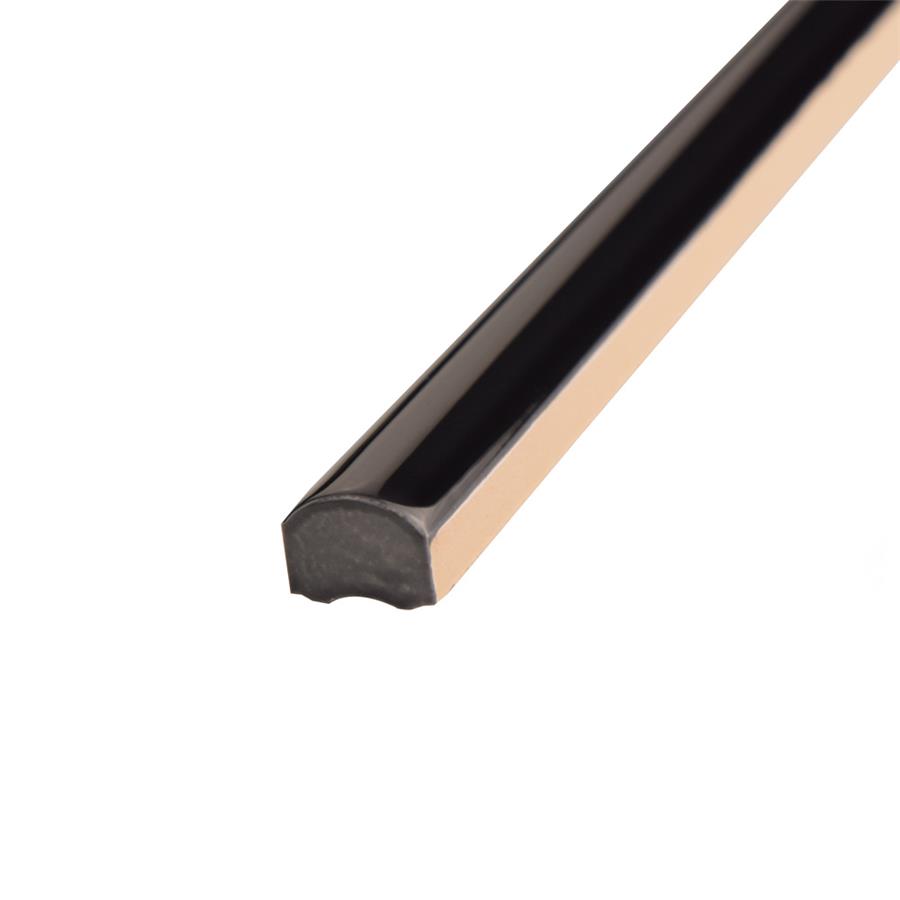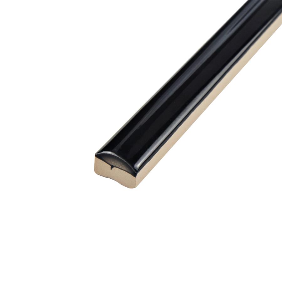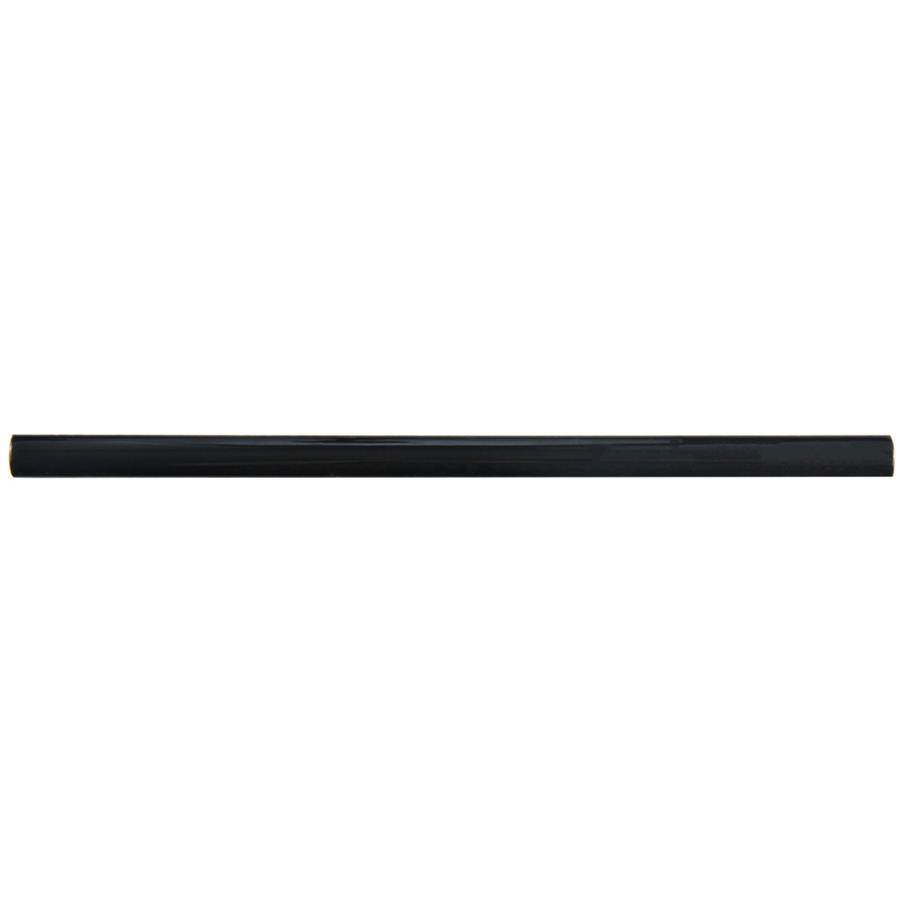 The SomerTile Twist Black Olive 1/2 in. x 11-3/4 in. Cana Cigarro Ceramic Wall Trim Tile is part of a collection that features a smooth, high sheen finish with colors that really pop. The shades of black that are uniform throughout are sure to make any room stand out. Coordinate tiles and the trims in this collection to create multicolor patterns and create a custom look to suit your space. Utilize this wall trim to accent a kitchen backsplash or bathroom walls, but avoid any place where scratching is possible.
